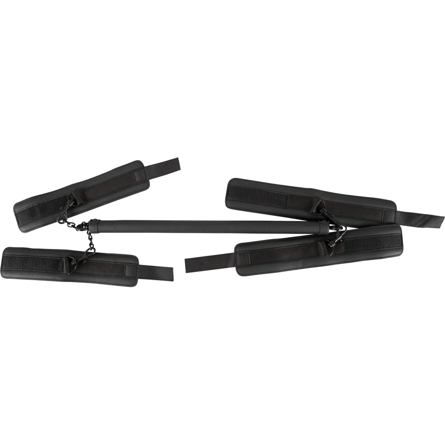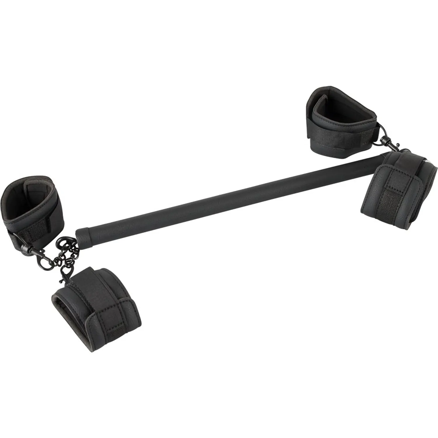 Pentru robie captivantă! Bara robustă cu cătușe și manșete de gleznă care pot fi fixate la fiecare capăt. Cătușele din imitație de piele sunt căptușite ușor și pot fi reglate cu susținerea elementelor de fixare cu cârlig și buclă. Cătușele pot fi conectate de bară cu ajutorul cârligelor de prindere. Lanțul de conexiuni cu metale scurte poate fi utilizat pentru a uni îmbinările, astfel încât să poată fi utilizate și pe cont propriu.