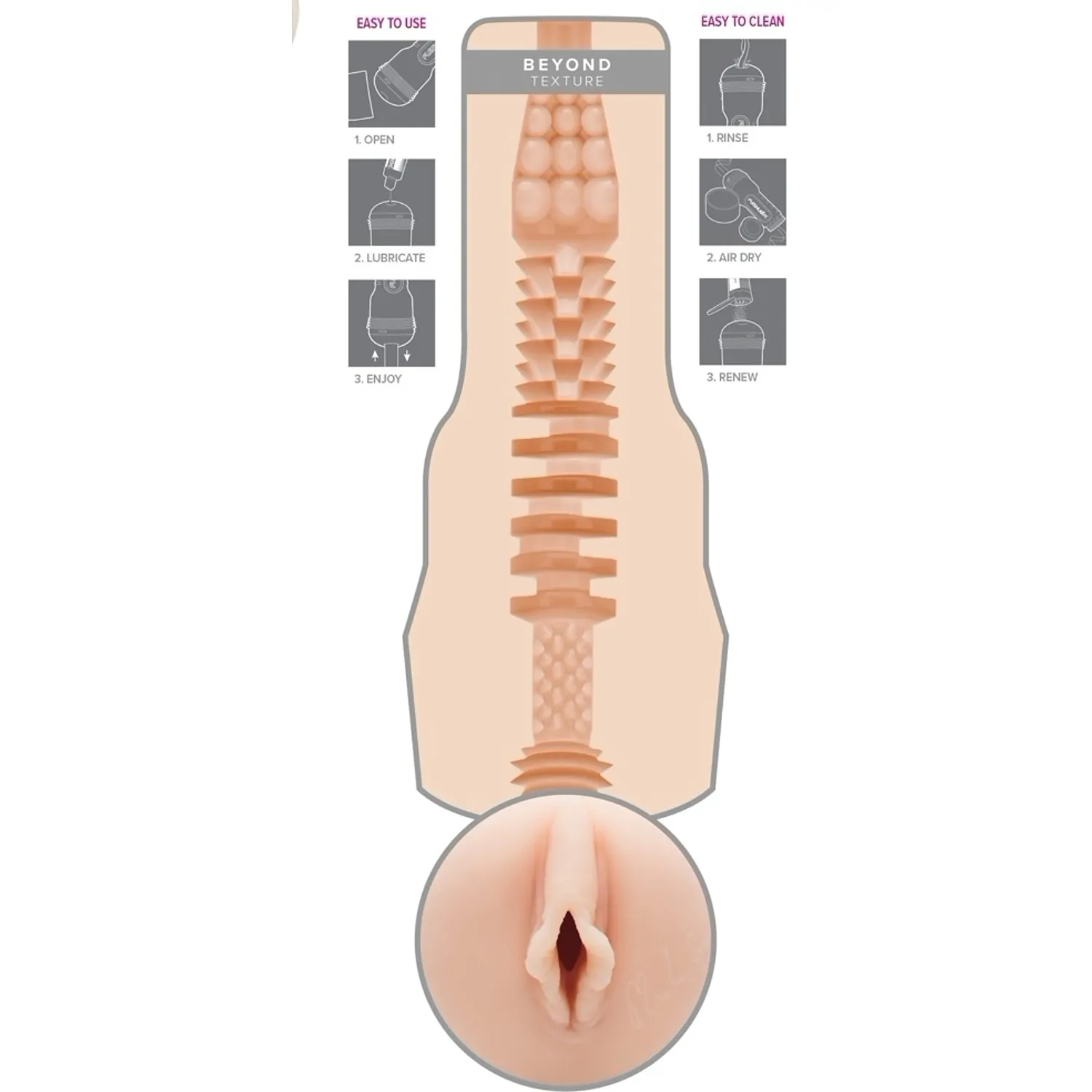 Masturbator Fleshlight Madison Ivy Beyond îți aduce aproximativ fiecare formă, fiecare textură și profil din zonele intime ale unei actrițe de top, Madison Ivy. Originară din Germania, are un aer special, emană sexualitate prin toți porii stârnind fantezii în mintea oricărui mascul (și nu numai). Canalul este extrem strâmt în zona de intrare. Urmează apoi o alternanță de cavități brăzdate de rizuri orizontale proeminente și zone strâmte acoperite de bumbi mici sau cili fini. Zona finală prezintă iar un diametru din ce în ce mai strâmt. La fiecare deplasare membrul tău va trece prin zone diferite, cu o culoare diferită a stimulării.