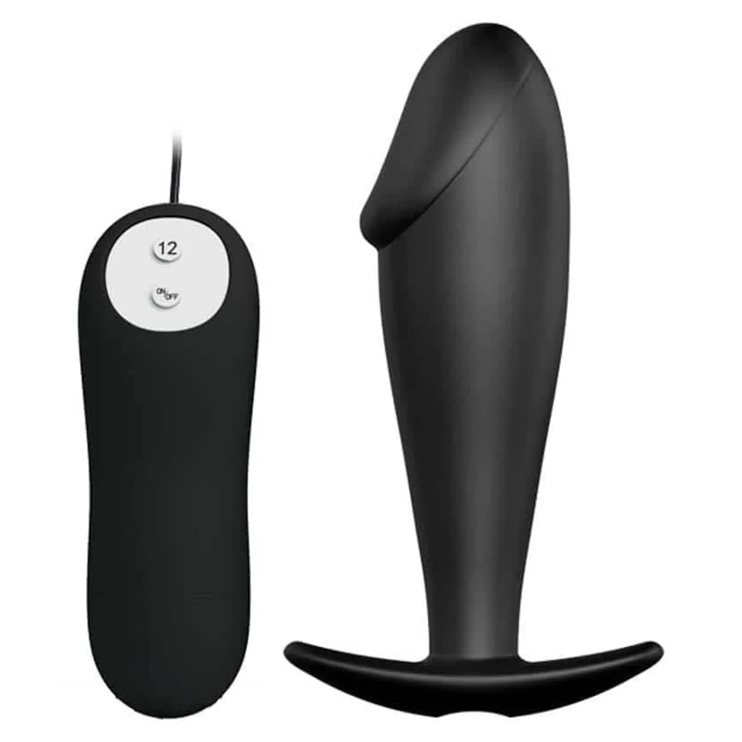 Anal Plug în formă de penis, destinat să atingă punctele cele mai sensibile ale zonei anale, pentru plăceri sexuale puternice. Înveliș din silicon și rezistență la apă. întregește aceste detalii cu 12 moduri de vibrații, comandate prin telecomandă cu fir. Forma de ancoră a bazei va ajuta la manipulare în siguranță a produsului, nu permite introducerea integrală a jucăriei.