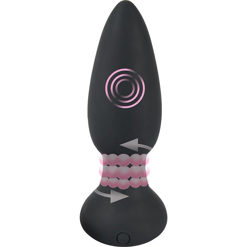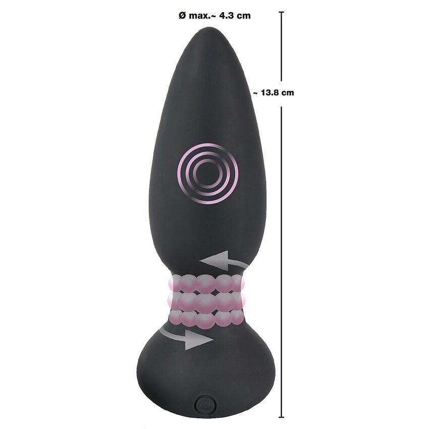 Rotație fierbinte! Acest plug anal asigură acțiune fierbinte în zona P cu cele 7 moduri de rotație. Poate fi controlat cu telecomandă, ceea ce înseamnă că este perfect pentru jocuri de cupluri interesante sau distracție fierbinte solo. Numeroase mărgele mici se rotesc în arbore și creează o stimulare incredibilă. Baza îl împiedică să alunece prea mult. Include un cablu USB.