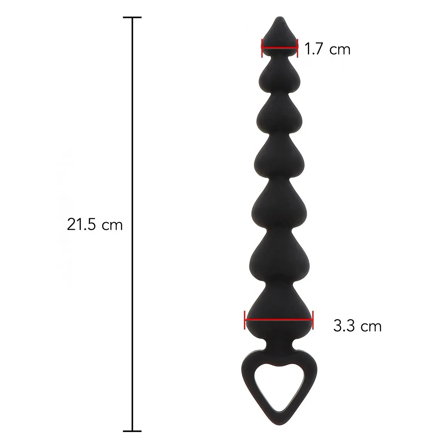 Bile Anale Heart Beads by ToyJoy sunt bile anale cu 7 margele în aspect de inimă. Bile Anale Heart Beads by ToyJoy este fabricat din silicon premium, moale, sigur pentru corp. Design-ul maleabil și vine cu o buclă de recuperare ușoară în formă de inimă pentru un confort suplimentar.