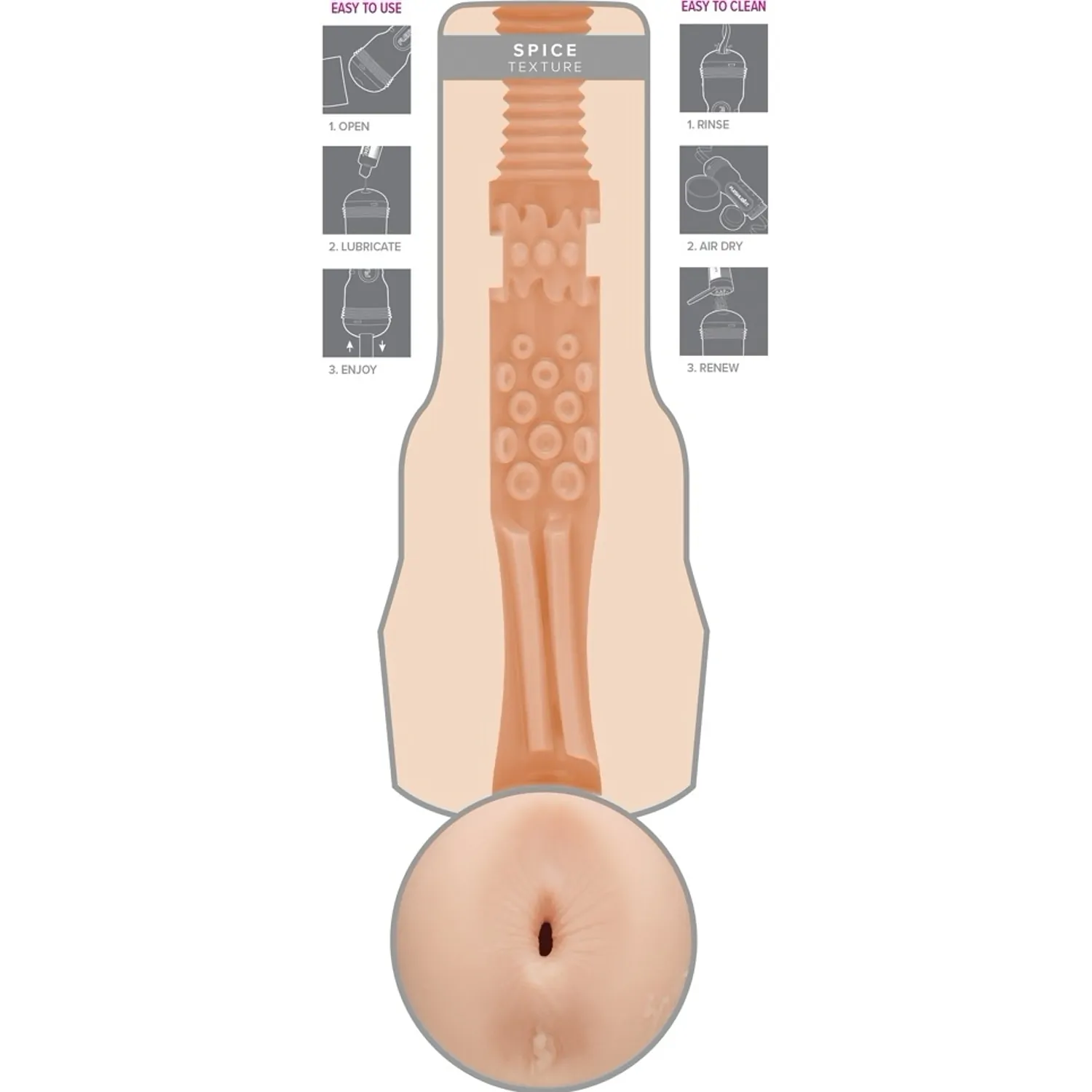Interiorul masturbatorului este dintr-un material fin și elastic, foarte apropiat de senzația de tegument umană. Pentru un mare de realism, materialul preia repede căldura corpului tău și ajunge la o temperatură identică. Alături de profilul interior prudent studiat, furnizează astfel șansa unor trăiri incredibil de realistice. Cu un aspect fizic ce amestecă aerul latino cu elemente asiatice, Eva Lovia este remarcată pentru fundul ideal și tonul original al pielii. Profilul intern al jucăriei este spectaculos, cu zone destul de strâmte, urmate de o cavitate acoperită cu noduli. După un alt segment strâmt, profilul se lărgește spre o zonă cu rizuri spiralate. Un amestec de feluri și texturi care asigură emoții intense și o fermitate specifică sexului anal.