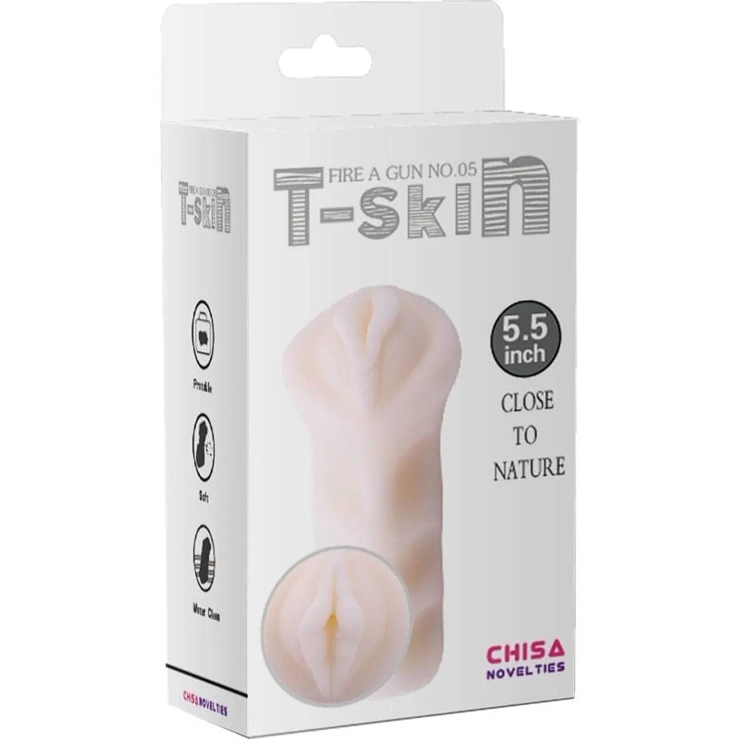 Masturbatorul T-Skin este un masturbator făcut din T-skin, o procedeu a siliconului de excepție superioară care imită absolut dermă umană, fiind deosebit de realist la atingere. Nu include și chimicale periculoase sau latex. Este perfect pentru cei ce doresc o treabă de calitate și realistică.