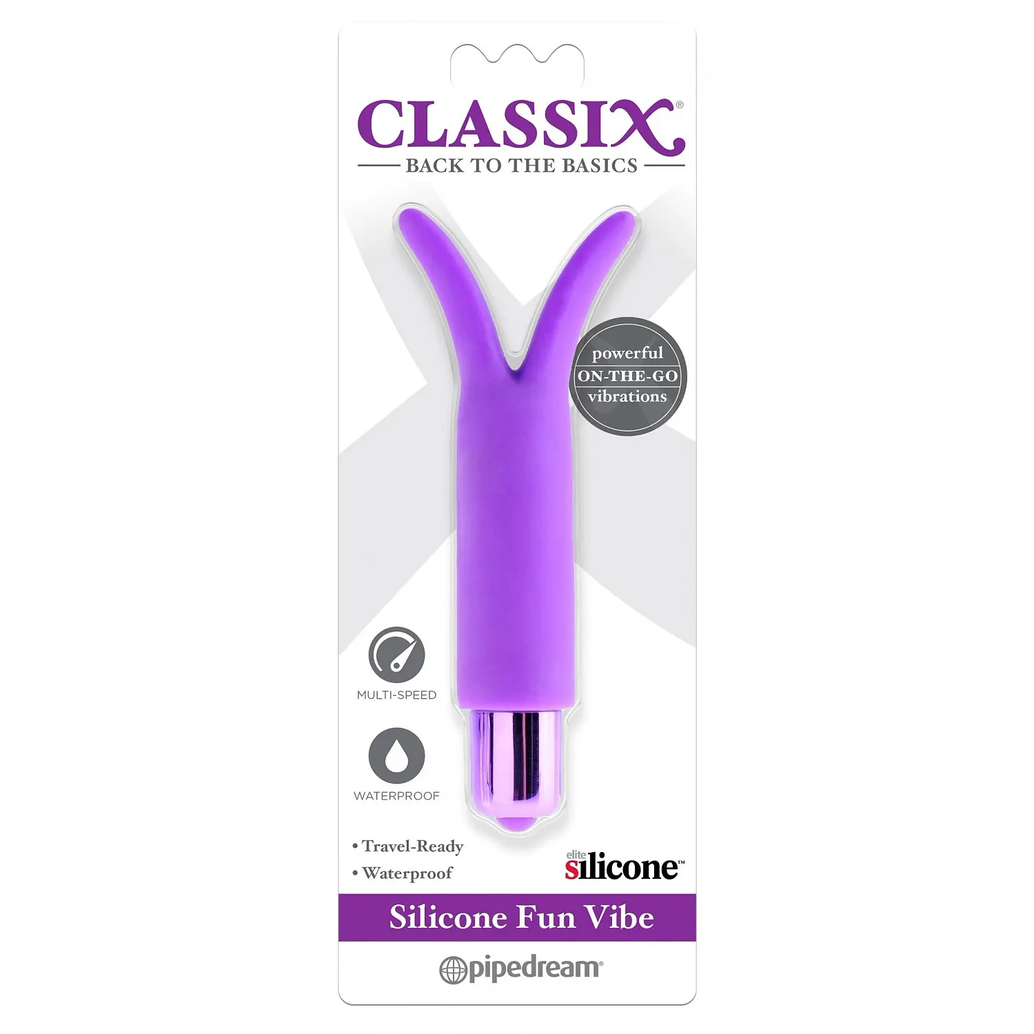 Vibrator perfect pentru incepatori. Vibratorul Classix Fun Vibe este fabricat dintr-un material neted, hipoalergenic, placut la atingere. Asta ofera vibratii satisfacatoare cu 3 trepte prin simpla strânsoare a unui buton. Urechile palpaitoare gadila si tachina zonele erogene sensibile, in timp ce varful vibratorului ofera o stimulare placuta si precisa. Incercati-l in cada sau la dus si transformati ora baii in timp de placere!