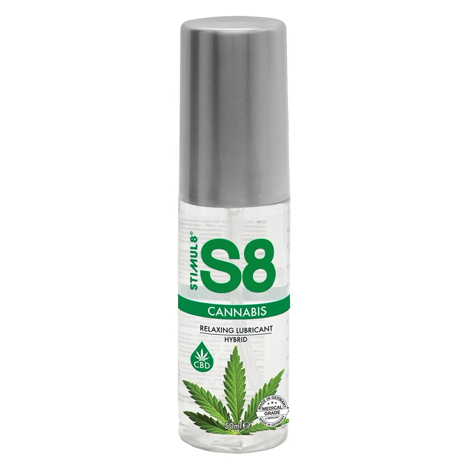 Agent de ungere hibrid, angelic pentru cei care nu vor să facă nici un compromis! Acest produs finit comasează textura densă și anduranța unul lubrifiant pe bază de silicon cu formulă ușor de îndepărtat a lubrifianților pe bază de apă. Lubrifiantul are și compuși rarisim derivați din Cânepă, așa cum este substanța găsită în mod natural. Recunoscut pentru proprietățile relaxante, acest compus te va ajuta să te relaxezi și să te bucuri de distracție. S8 este sigur pentru corp, nu conține parabeni, ftalați, gluten sau sulfiți.