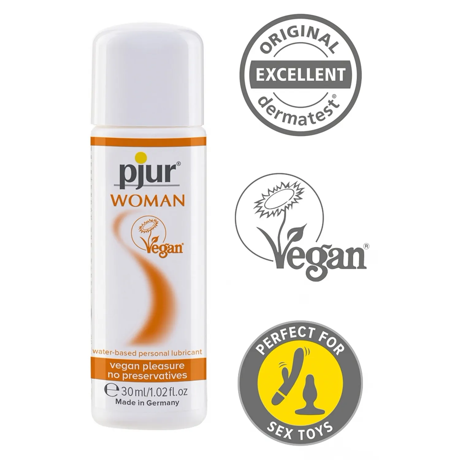 Lubrifiantul personal vegan dezvoltat deosebit pentru femei: Pjur Woman Vegan este adaptat la nivelul pH-ului zonei feminine. Nu contine parabeni, parafine, glicerina, parfumuri sintetice sau aditivi de culoare. Pentru o mai buna excepție a vietii si mai multa satisfactie sexuala. Acest creat este corespunzător cu prezervativele din latex si toate jucariile sexuale. Pjur Woman Vegan poarta marca Vegan Society, acest sigiliu este un ghid pentru consumatori, care le arata ca produsele in cauza nu contin componente animale si nu au fost testate pe animale. Placere naturala!