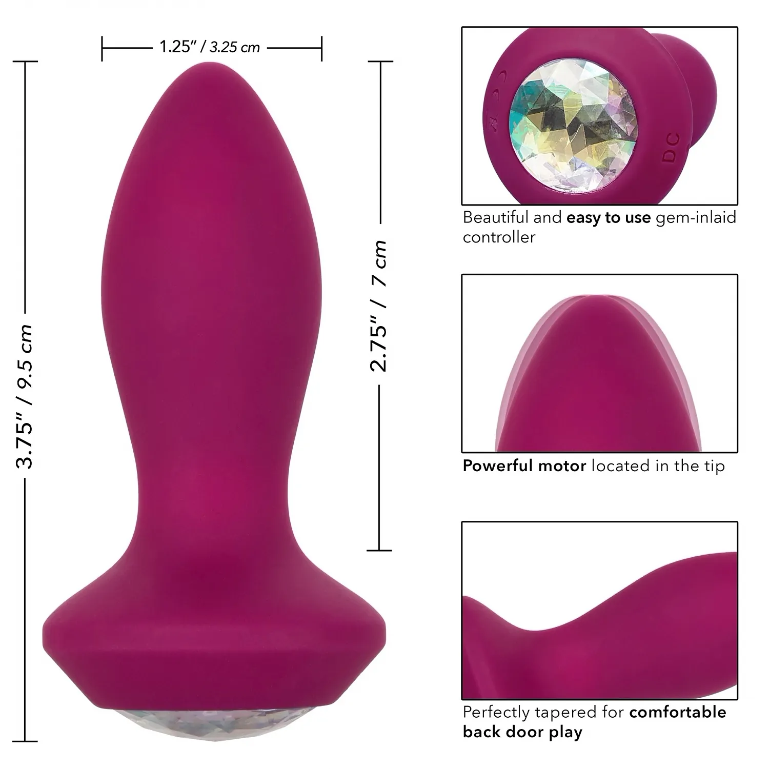 Anal Plug-ul vibrant Petite Crystal Probe este un dop anal de silicon orbitor, flexibil, creat pentru a vă face să vă desfătați de o delectare anală palpitantă. Designul flexibil, adaptat corpului și motoarele pătrunzătoare vibe permit acestui plug să se muleze cu mișcările dumneavoastră, dând în același timp vibrații intense. Răsfățați-vă cu desfătare personalizată în timp ce plug-ul dichisit pulsează cu 10 vibrații, pulsații pasionale și escaladare erotică.
