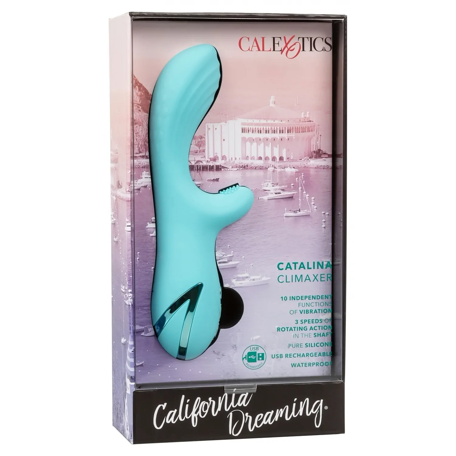 Scufundati-va adanc intr-o mare de placere si închipuiri cu Catalina Climaxer. Vibratorul luxos are 10 functii intense de vibratie si 3 viteze de rotatie a arborelui pentru o experienta de placere unica. Trupul din silicon fara sudura si teaserul texturat ofera stimulare si in apa. In timp ce arborele curbat va rasfata cu o stimulare puternica a punctului G, teaserul clitoris mătăsos si texturat ofera o placere exterioara fericita. Controlati si personalizati-va jocul de placere cu functiile de vibratie si rotire comandate independent. Bucurati-va de un control fara frustrare cu susținerea tastaturii de comanda cu 3 butoane usor de atins si a functiei de blocare de securitate pentru calatorie. Trunchiul practic fara sudura si portul de incarcare autosigilant va permit sa obtineti aceasta atmosfera impermeabila versatila la dus. Siliconul de lux hipoalergenic este sigur pentru corp, fara parfum si fara ftalati pentru a va mentine cele mai receptive zone, fericite si sanatoase.