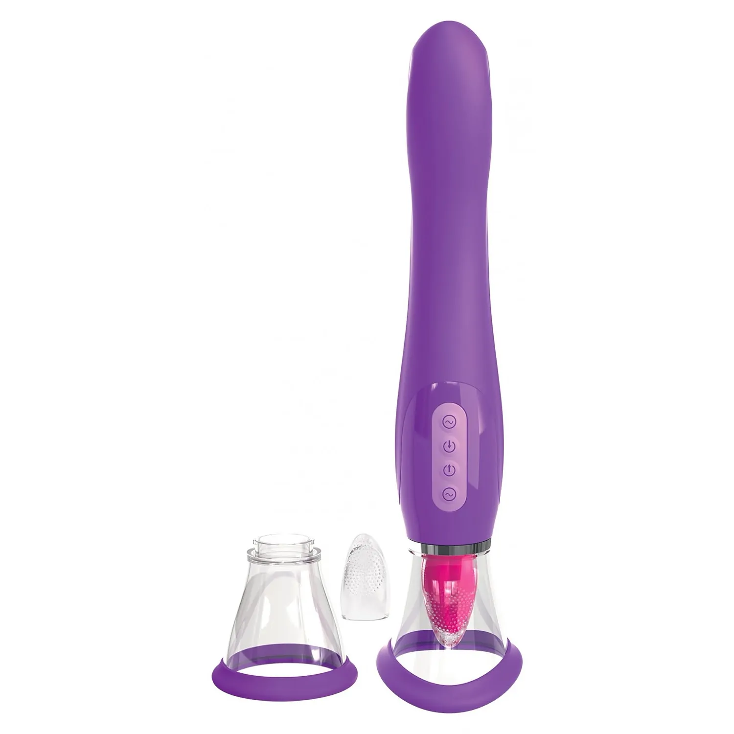 Trei jucării într-una pentru satisfacție generală! Acest vibrator 3-in-1 îndeplinește indiferent ce dorință: arborele ușor încovoiat ajunge cu ușurință la punctul G și îl întărâtă cu 10 moduri de vibrație. Cealaltă parte a jucăriei are un stimulator pentru clitoris cu 7 moduri de mișcare și o ventuză cu 3 eșantioane de aspirație care creează un vid prin simplă apăsare a unui buton.