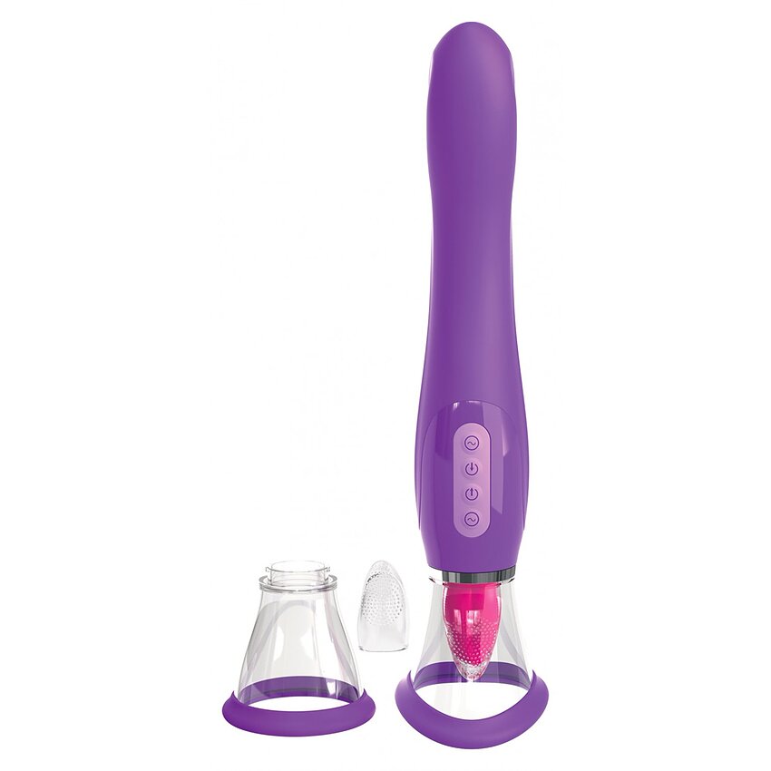 Trei jucării într-una pentru plăcere generală! Acest vibrator 3-in-1 îndeplinește orice dorință: arborele ușor curbat ajunge cu ușurință la punctul G și îl stimulează cu 10 moduri de vibrație. Cealaltă parte a jucăriei are un stimulator pentru clitoris cu 7 moduri de mișcare și o ventuză cu 3 modele de aspirație care creează un vid prin simplă apăsare a unui buton.