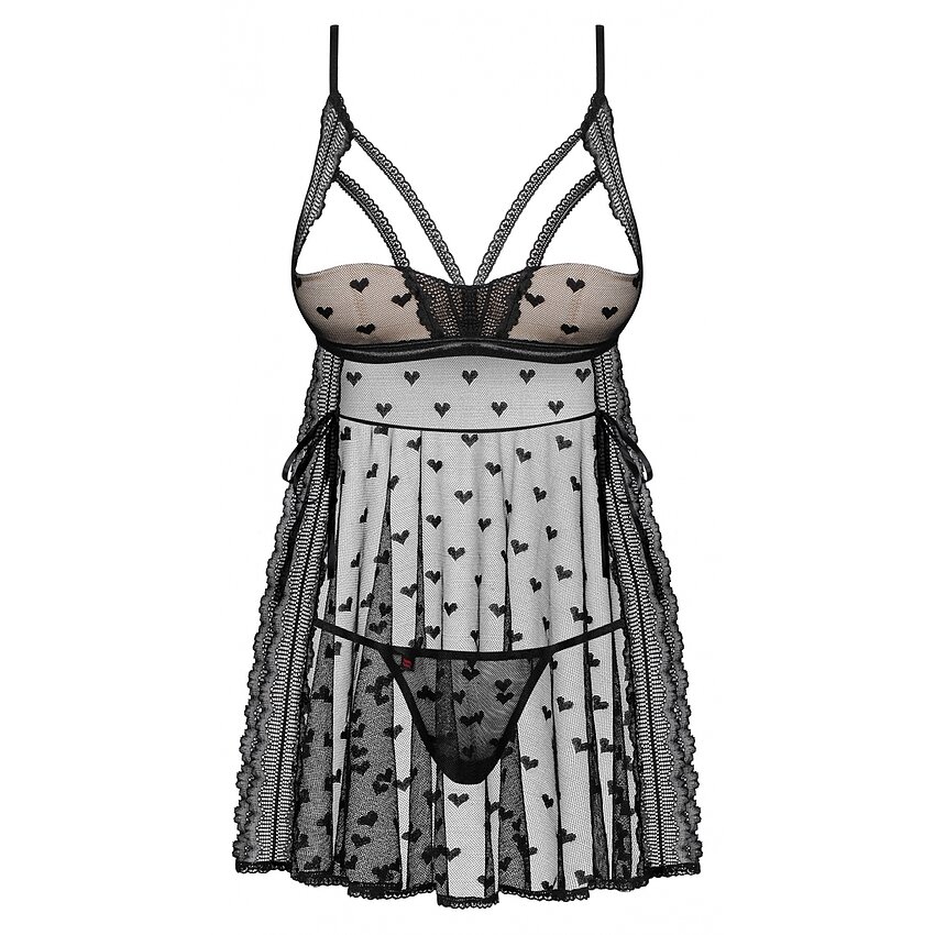 Babydoll Obsessive Heartia Negru este o piesă de lenjerie minunată și neînchipuit de savuroasă, gândită și produsă de importantul brand de lenjerie Obsessive din Polonia.