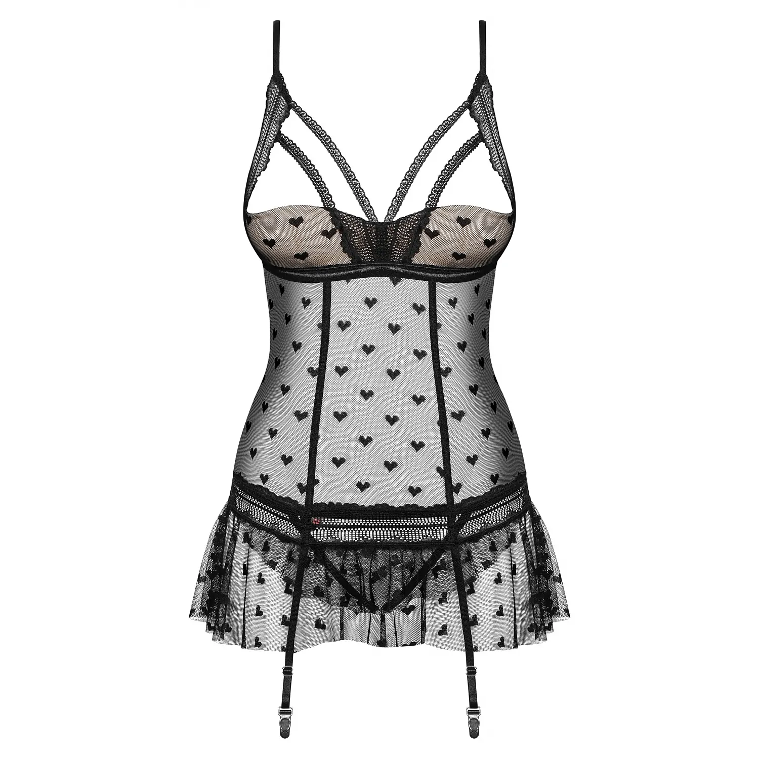 Corset Obsessive Heartia Negru este un articol de lenjerie încântătoare și exagerat de ademenitoare, inventată și confecționată de distinsul brand de lenjerie Obsessive din Polonia.