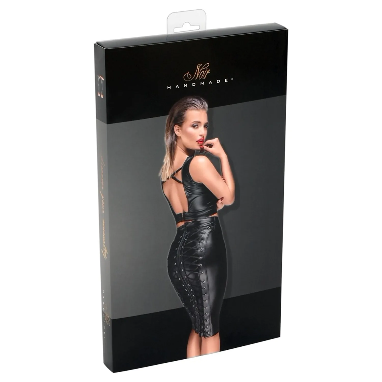 Noir Handmade. Fustă echipată la talie și cu șireturi fanteziste la spate, fermoar cu 2 cai (2 sensuri), fotografie wetlook.