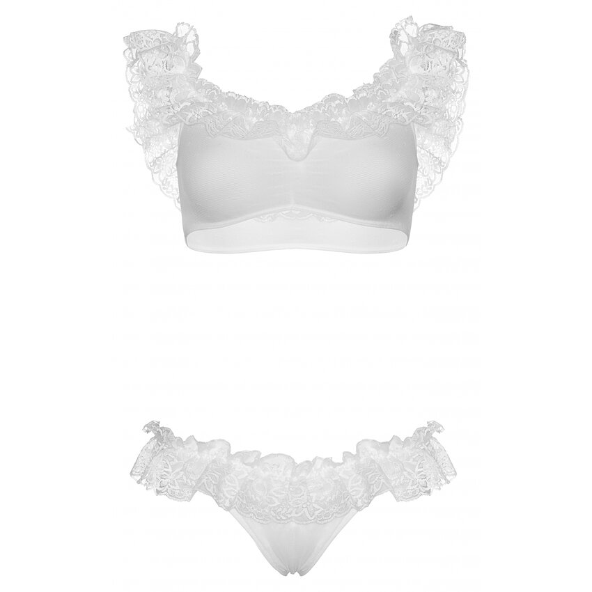 Set Leg Avenue Lace Ruffle Alb este o piesă de îmbrăcăminte tulburătoare și fabulos de seducătoare, inventată și realizată de valorosul brand de lenjerie Leg Avenue.