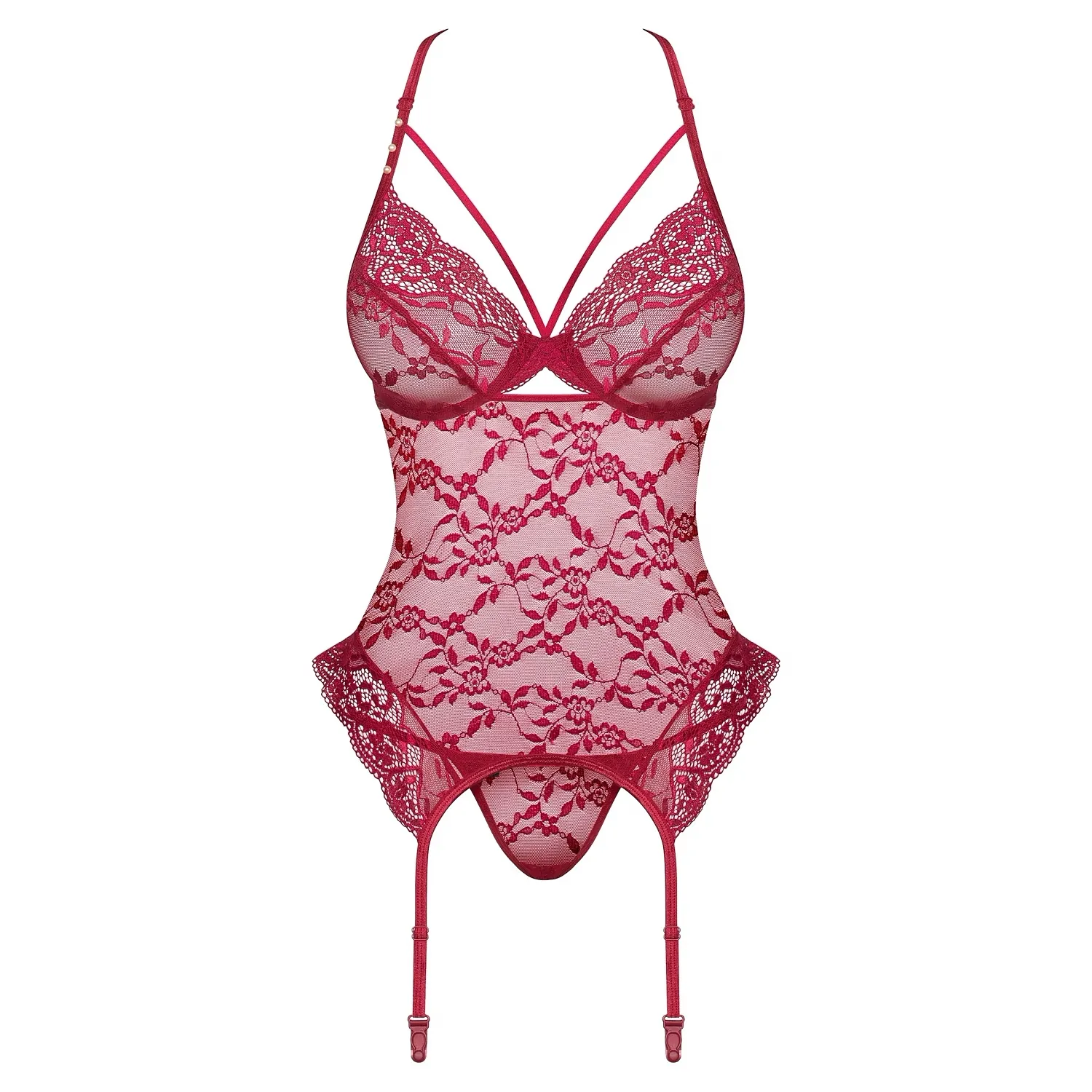 Corset Obsessive Ivetta Roșu este un obiect de lenjerie surprinzătoare și exagerat de tentantă, inventată și confecționată de ilustrul brand de lenjerie Obsessive din Polonia.