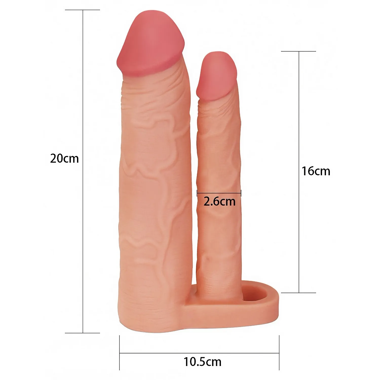 Partenera ta se va bucura de o inserție mai profundă cu extensia de 5 cm. În timp ce axul ultra-realist te face cu 40% mai gros în jur. Acest Prelungitor Dublu Penis Sleeve este super-elastic pentru a se potrivi majorității dimensiunilor, suficient de strâns pentru a te ajuta să te distrezi mai mult.