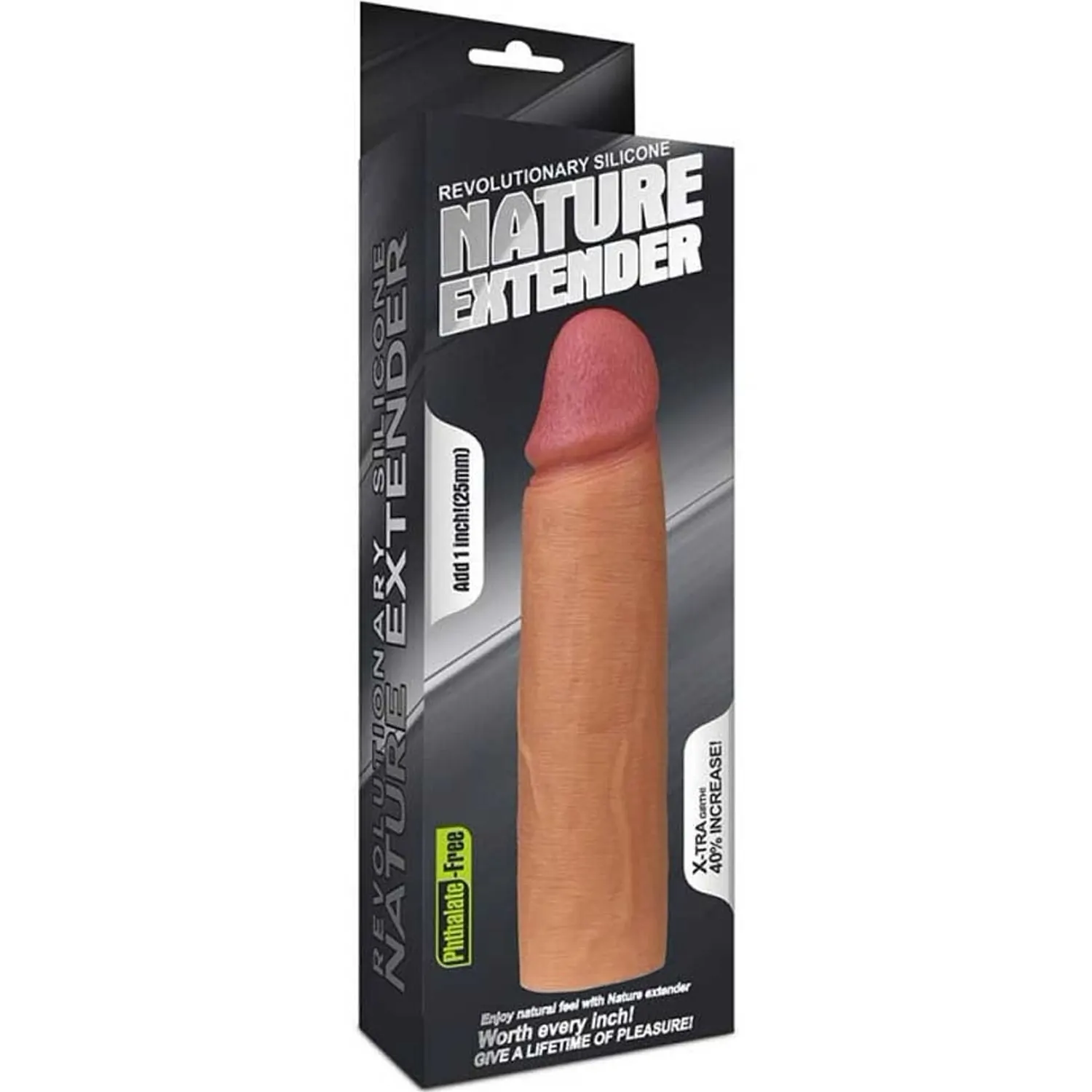 Revolutionary Silicone Nature Extender este un prelungitor pentru mădular fabricat de Lovetoy, confecționat din silicon de excepție superioară și rezistent la apă. Acesta are un gland realistic, bine definit și o textură care imită extrem de bine dermă umană. îmbogățește 2.5 cm în mărime membrului tău și îl îngroașă cu până la 40%.