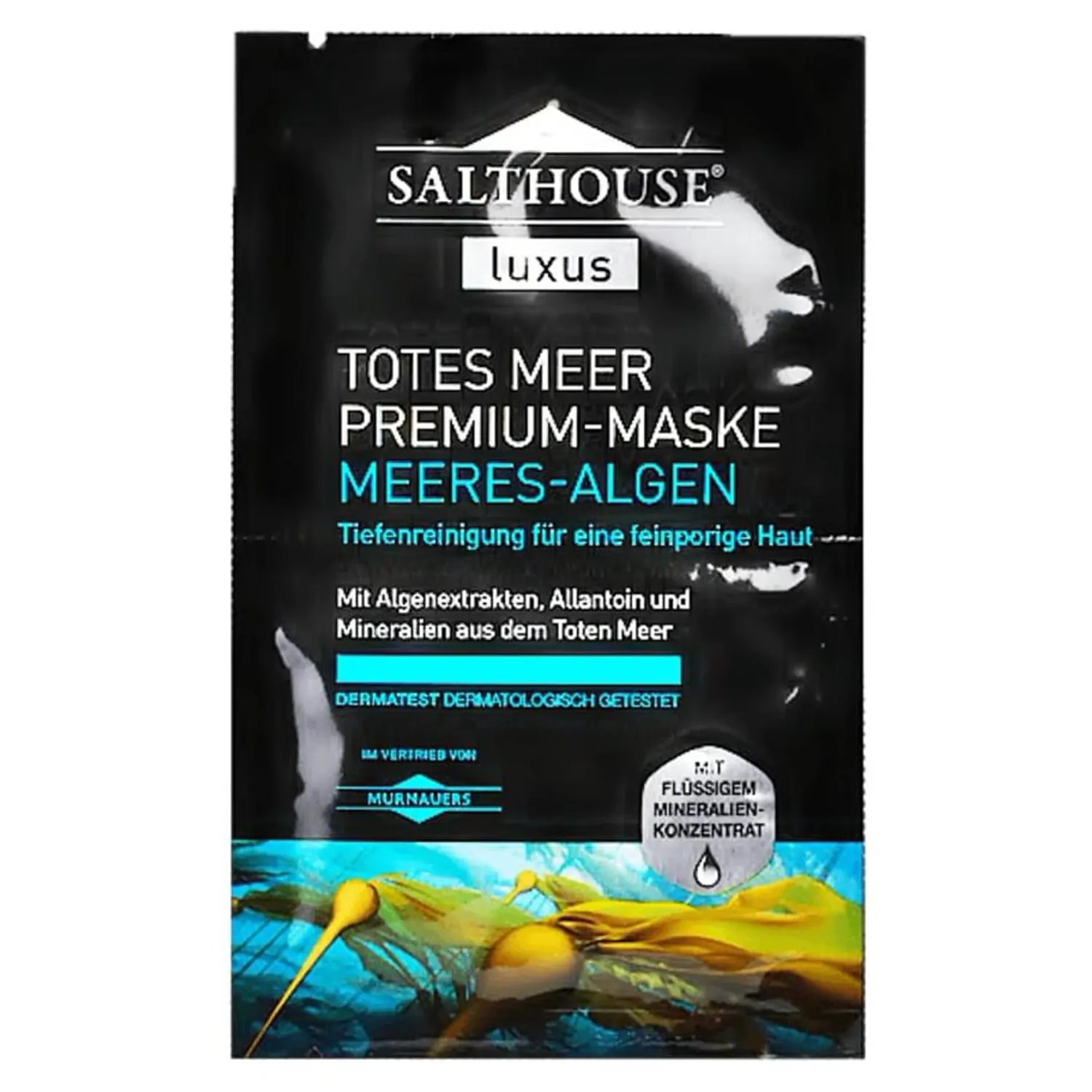 SALTHOUSE - MASCĂ DE LUX CU ALGE MARINE. Spălare profundă a porilor - Îngrijire extremă a tenului din adâncimile Mării Moarte. Acest fluid mineral concentrat din sursele antice de la Marea Moartă, cu magneziu, calciu, oligoelemente, potasiu, brom și numeroase alte urme de elemente este un complex rafinat de îngrijire a pielii reale pentru un ten neted, frumos, luminos. Bucurați-vă de un sentiment minunat de piele corect curățată! Această mască pentru curățare profundă,cu formula sa pe bază de extracte de alge de calitate premium, alantoină calmantă și un concentrat mineral unic de la Marea Moartă îndepărtează excesul de sebum și depozitele. Aceasta curăță pielea, ponderează vizibil porii și îmbunătățește vizibil elasticitatea - pentru o epidermă care se simte reîmprospătată și reînnoită, la fel ca și cum ai fi petrecut o zi de mare! Îngrijire adițională pentru tenul Dvs. Produs verificat dermatologic. Utilizare: întrebuințați prin mișcări circulare ușoare, tamponând ușor pielea, evitând zona din jurul ochilor și a gurii. Lăsați timp de aproximativ 10 minute, îndepărtați cu un șervețel excesul, apoi clătiți cu multă apă călduță, minus săpun. Vă recomandăm să folosiți masca de 2-3 ori pe săptămână