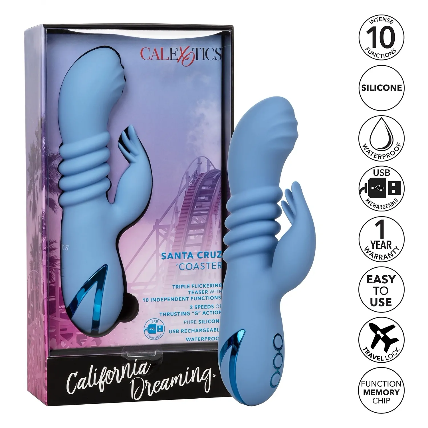 California Dreaming - Santa Cruz Coaster va vă dărui impulsul pe care îl căutați. Această jucărie senzuală vine cu un teaser precis, care pâlpâie pe o deplasare independentă, pentru o bunăstare intimă mare într-o siluetă familiară.