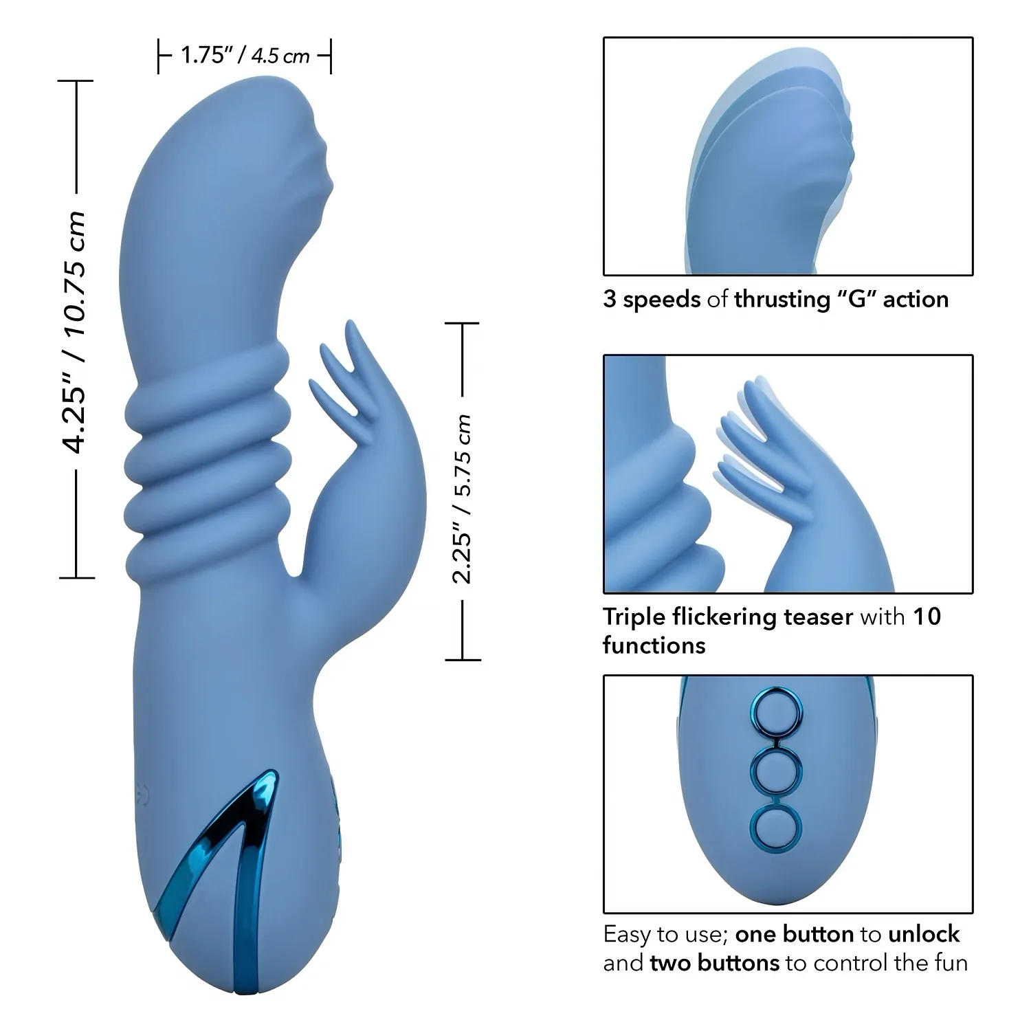 ✔Lungime Totală: 19 cm ✔Lungime Inserabilă: 10.75 cm ✔Diametru: 4.5 cm ✔Culoare: Albastru ✔Material: Silicon ✔Import: SUA ✔Brand:CalExotics