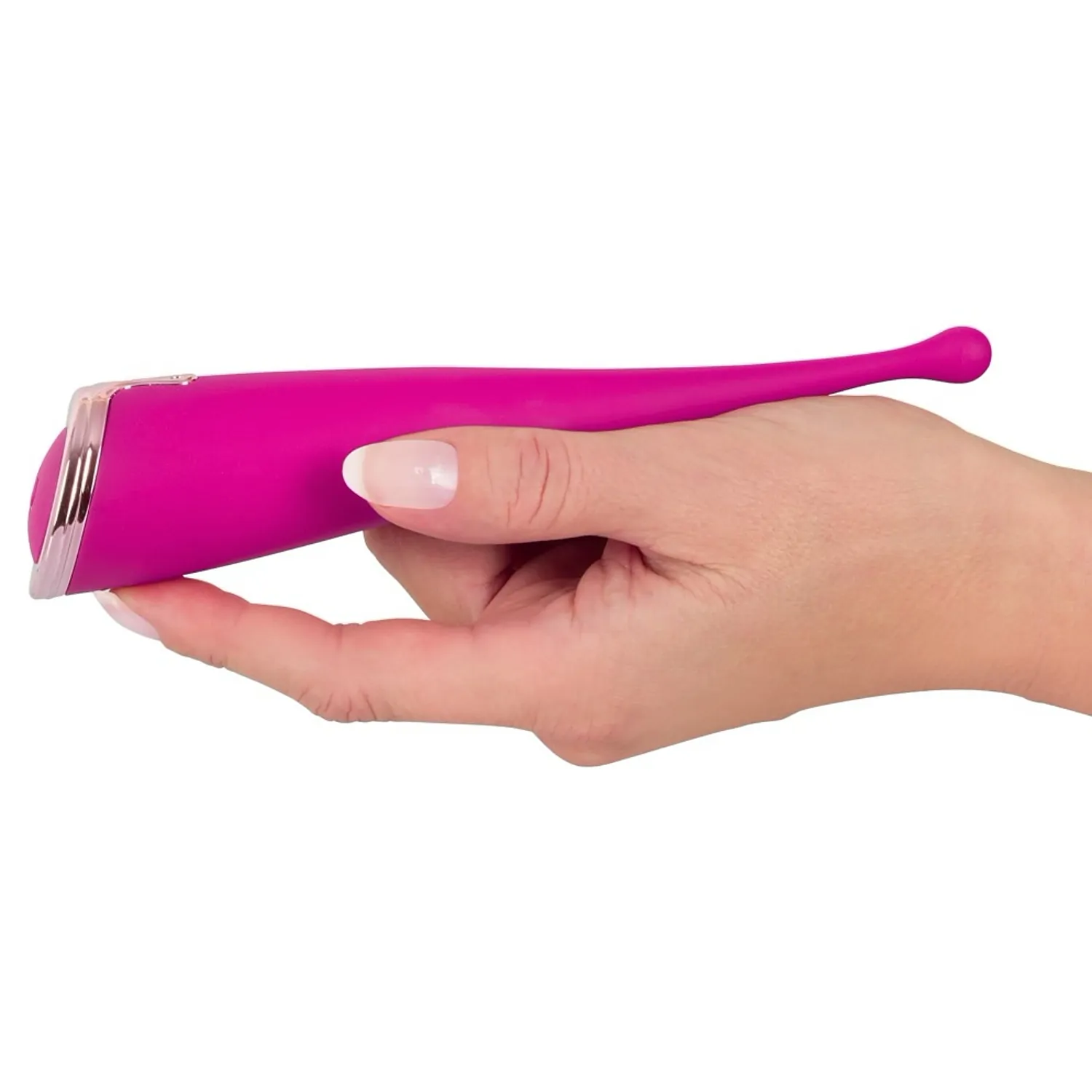 Stimulare la fața locului! Acest vibrator conferă o desfătare perfectă! Vibratorul ajunge întotdeauna în zona potrivită care trebuie stimulată cu vârful sau rotunjit și subțire - fie că este vorba de mameloane, clitoris, punct P, perineu sau anus. Mărimea vârfului vibratorului Spot își atinge întotdeauna ținta repede și, odată ajuns acolo, bucură zona cu cele 10 moduri de vibrație și suprafața moale catifelată. Conține un cablu USB.