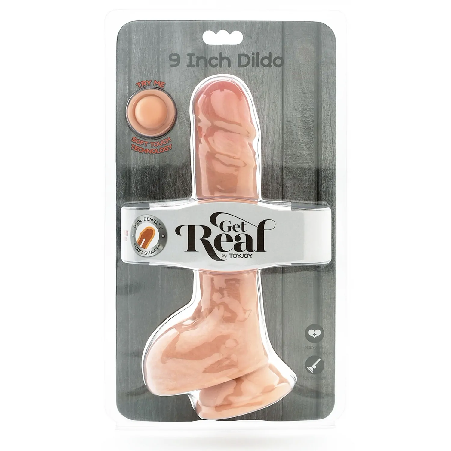 Dual Density Penis 9 Inch Natural este un dildo realistic cu ventuză, din colecția Get Real by TOYJOY, produs pentru a vă atinge toate punctele fierbinți intime.