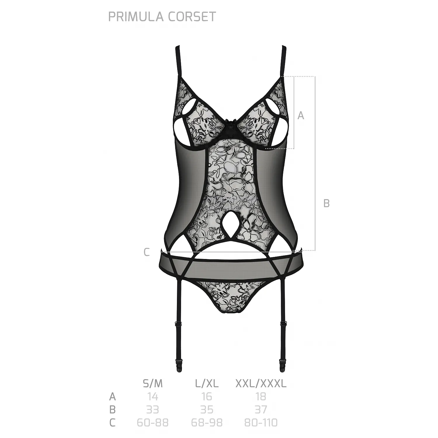 Corset Passion Eco Primula Negru este o piesă de lenjerie fantastică și incredibil de captivantă, gravată și produsă de prestigiosul brand de lenjerie Passion din Polonia.