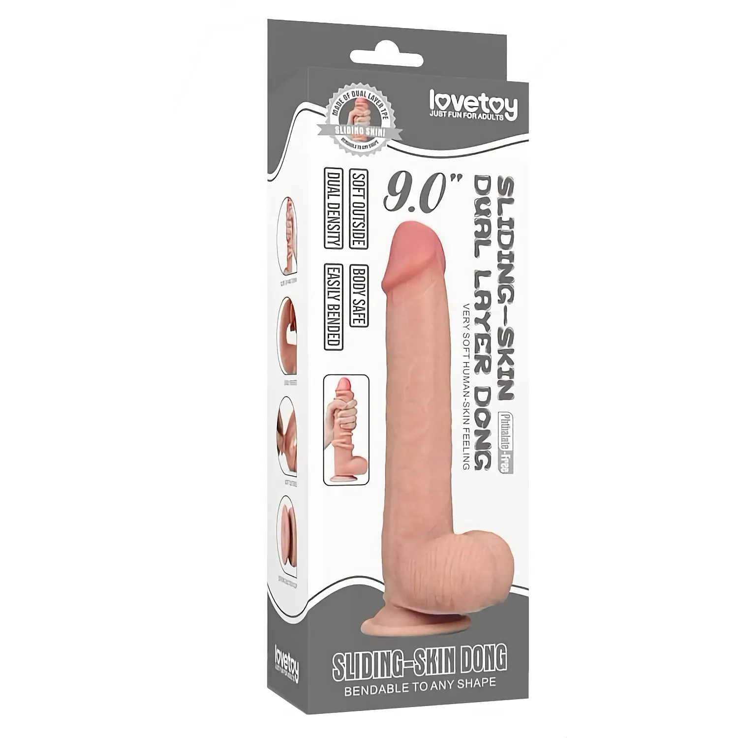 Materialul din care este realizat Dong cu Ventuza Sliding Skin 23cm, este însușit cu dublă densitate, din două straturi pentru o senzație cât mai reală: fin și mătăsoasă la exterior, fermă pe interior. Dildo-ul are o flexibilitate totală, se îndoaie în orice unghi, excluzând riscul de deteriorare a materialului.