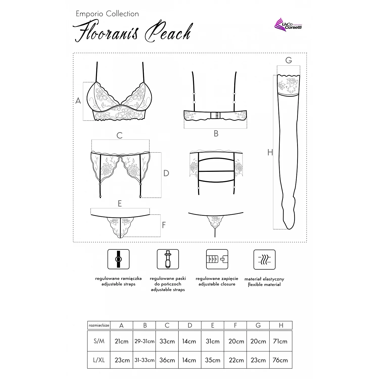 Set LivCo Flooranis Peach Emporio Collection Roz este o piesă de lenjerie fantastică și exagerat de încântătoare, inventată și concepută de remarcabilul brand de lenjerie LivCo din Polonia.