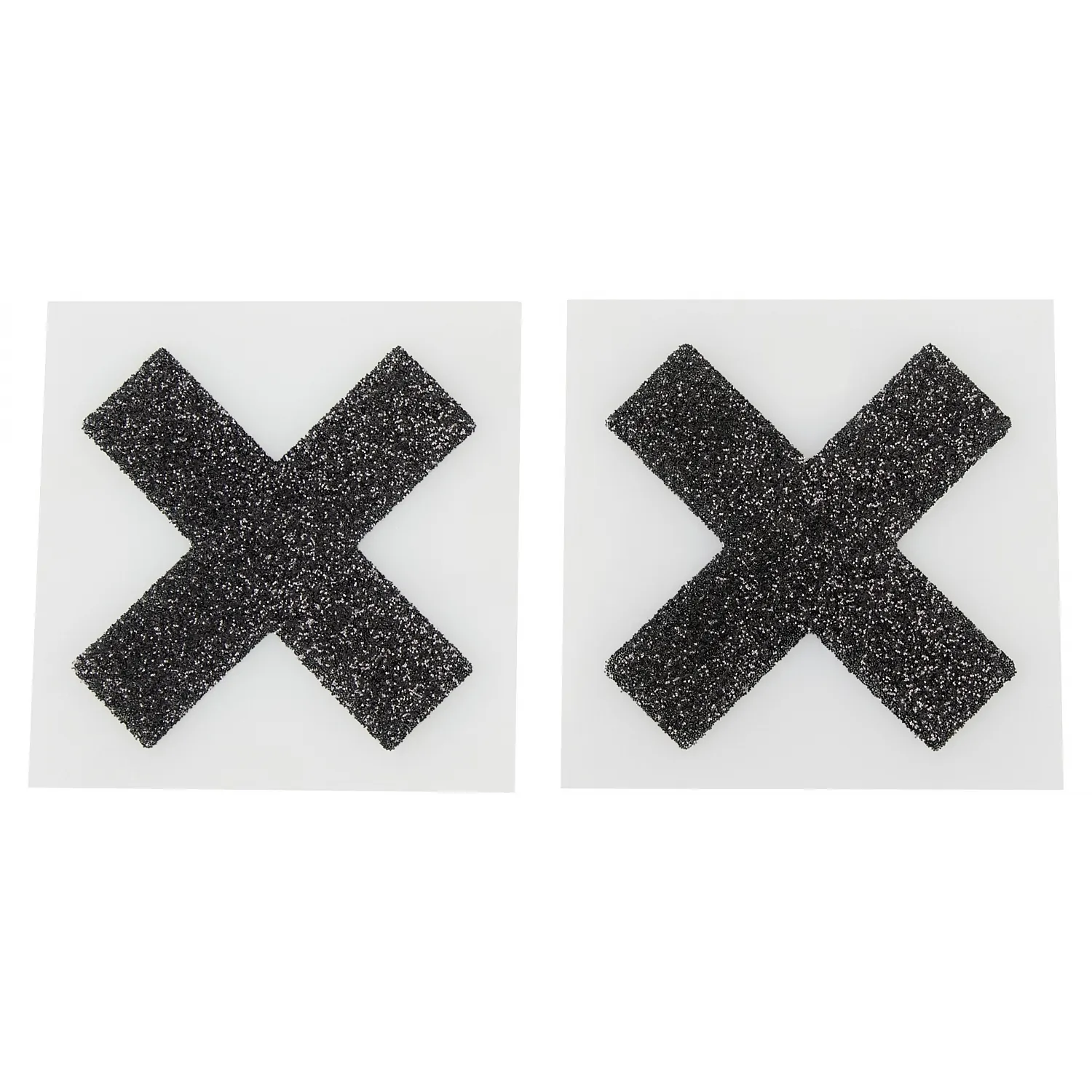 În centrul atenției: decorațiunea perfectă pentru un show burlesque sau striptease privat! Abțibilduri sclipitoare, în formă de X, de alură neagră pentru sfârcuri. Transformă-ți apariția într-un spectacol de ținut minte cu aceste autocolante sclipitoare!