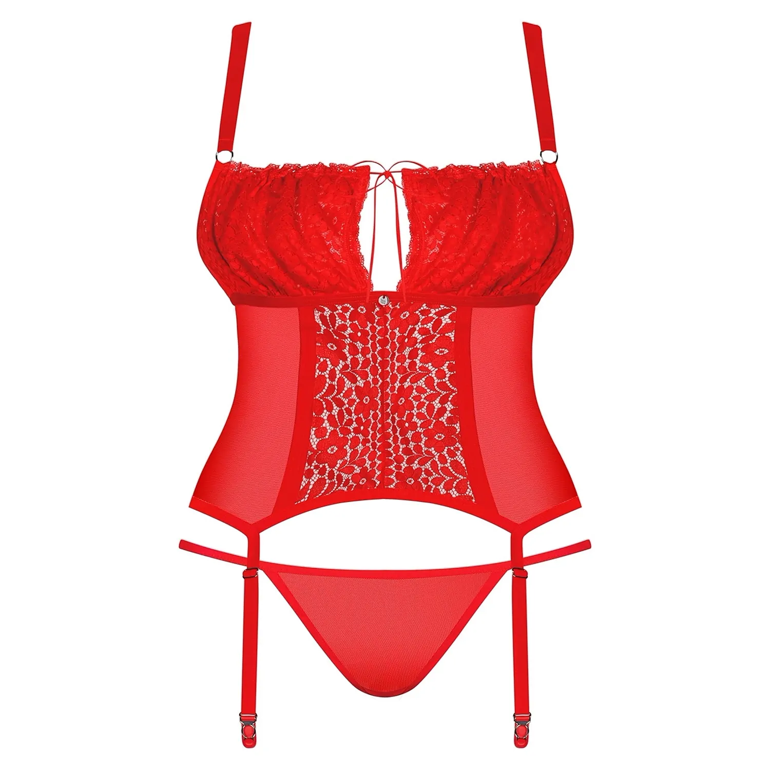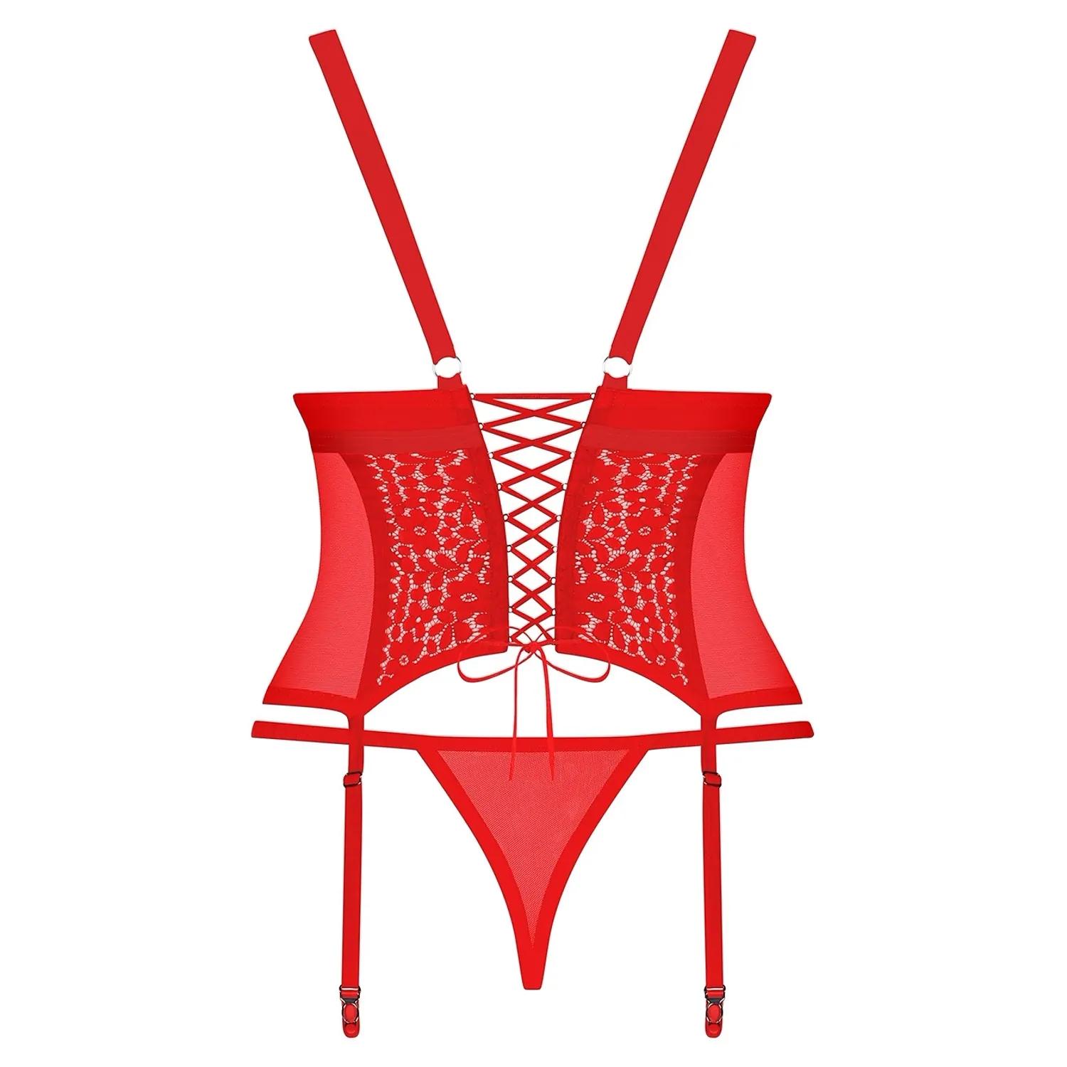 Corset Obsessive Blossmina Roșu este un articol de lenjerie uluitoare și extrem de seducătoare, inventată și concepută de excepționalul brand de lenjerie Obsessive din Polonia.