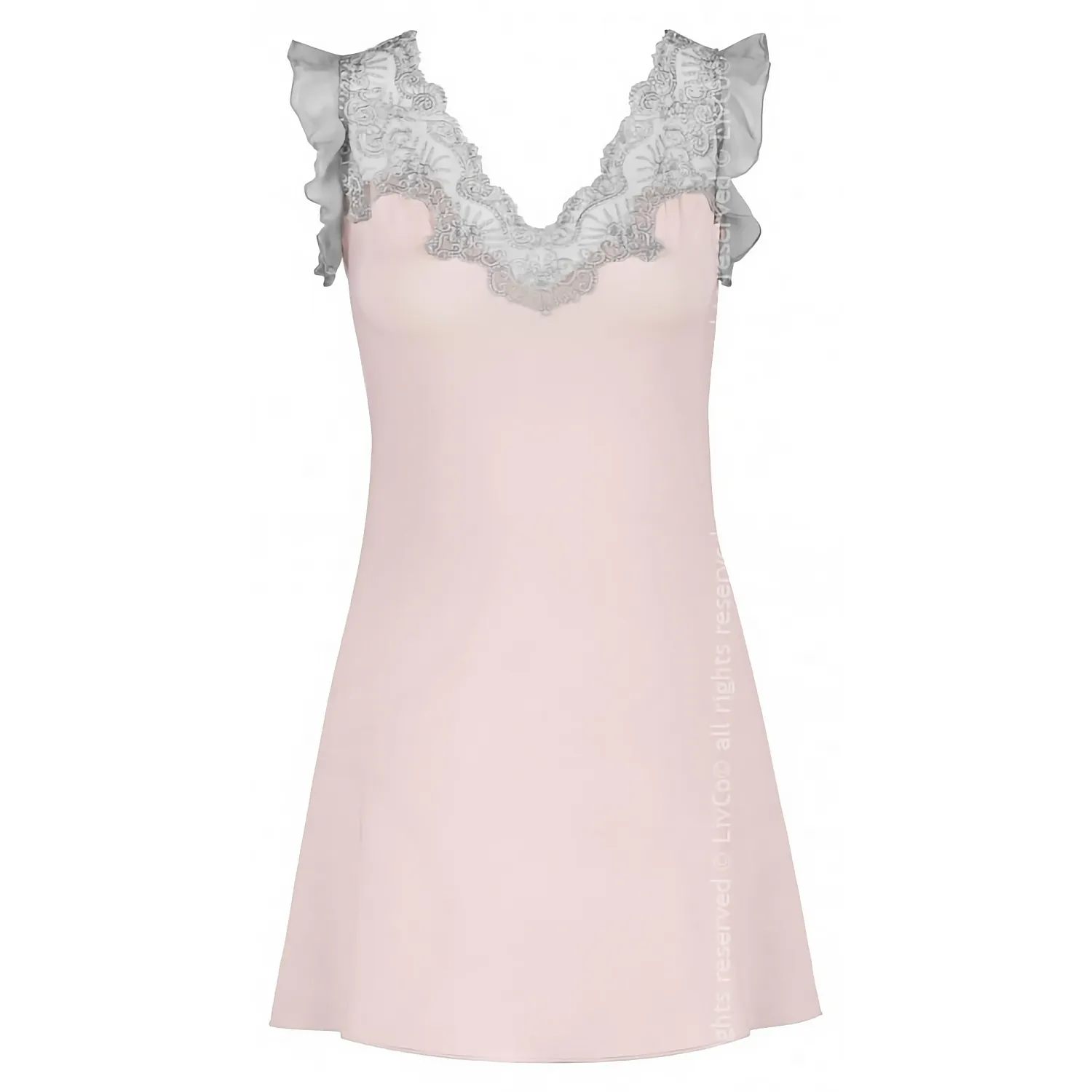 Chemise LivCo Caelie Roz este o piesă de lenjerie tulburătoare și inimaginabil de fermecătoare, concepută și confecționată de prestigiosul brand de lenjerie LivCo din Polonia.