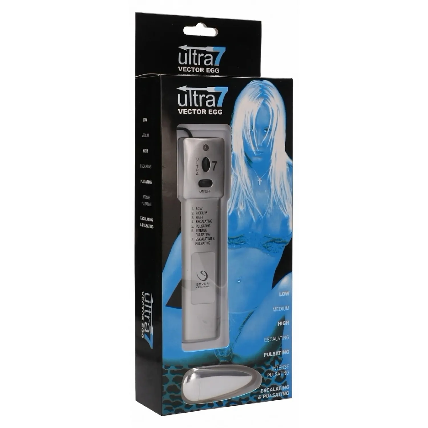 Vrei numeroase plăceri sexuale și nici măcar vibratorul nu-ți mai poate face față? Încearcă acest vibrator ou cu mai multe vibrații și satisfacția îți va fi garantată! Vibratorul Ou Ultra 7 Vector furnizează 3 niveluri de vibrație tradițională, un mod de vibrație în creștere, o vibrație pulsatorie în două viteze și un combo făcut pentru o senzație carnală ultra-șapte.