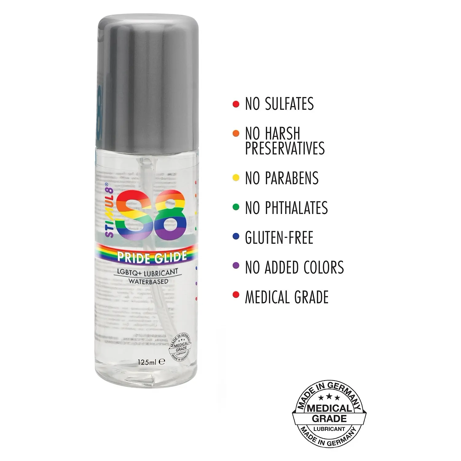 Agent de ungere S8 Pride Glide este un produs de excepție ce acordă desfătare și confort. Are o textură ușoară, intensifică ungerea intimă prin reducerea frecării în timpul acțiunii.
