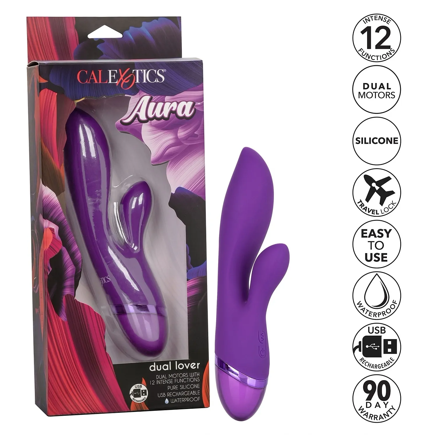 Treziți-vă dorințele interioare cu Aura Dual Lover, un vibrator cu stimulator dublu puternic și jucăuș. Transmite o plăcere de mare tărie radiind în tot corpul tău cu cele două motoare dominant stimulatoare.