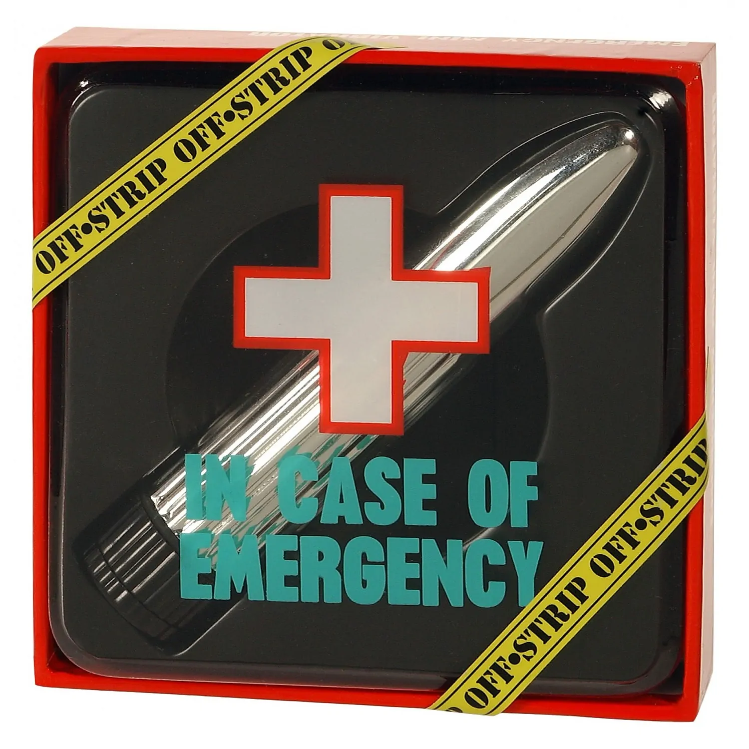 Livrare discretă la adresă sau Easybox Un adevărat vibrator împachetat într-o cutie de carton în stilul alarmelor de incendiu tradiționale In case of Emergency