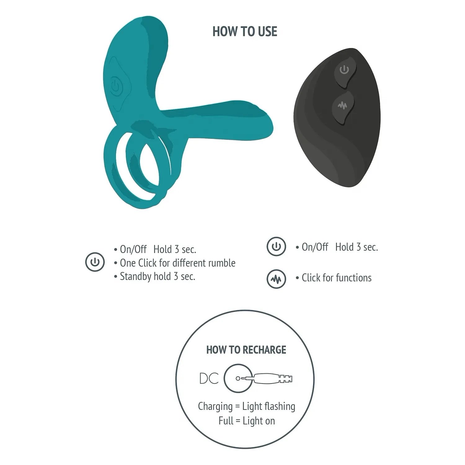 Inelul vibrator are 2 motoare de putere, foarte silențioase, și este prevăzut cu 7 programe de vibrații și 2 trepte de viteză. Stimulatorul pentru clitoris este creat din striații de silicon medicinal care intensifică plăcerea. Extensia inelului este suficient de lungă pentru a penetra complet și pentru a atinge punctul G.