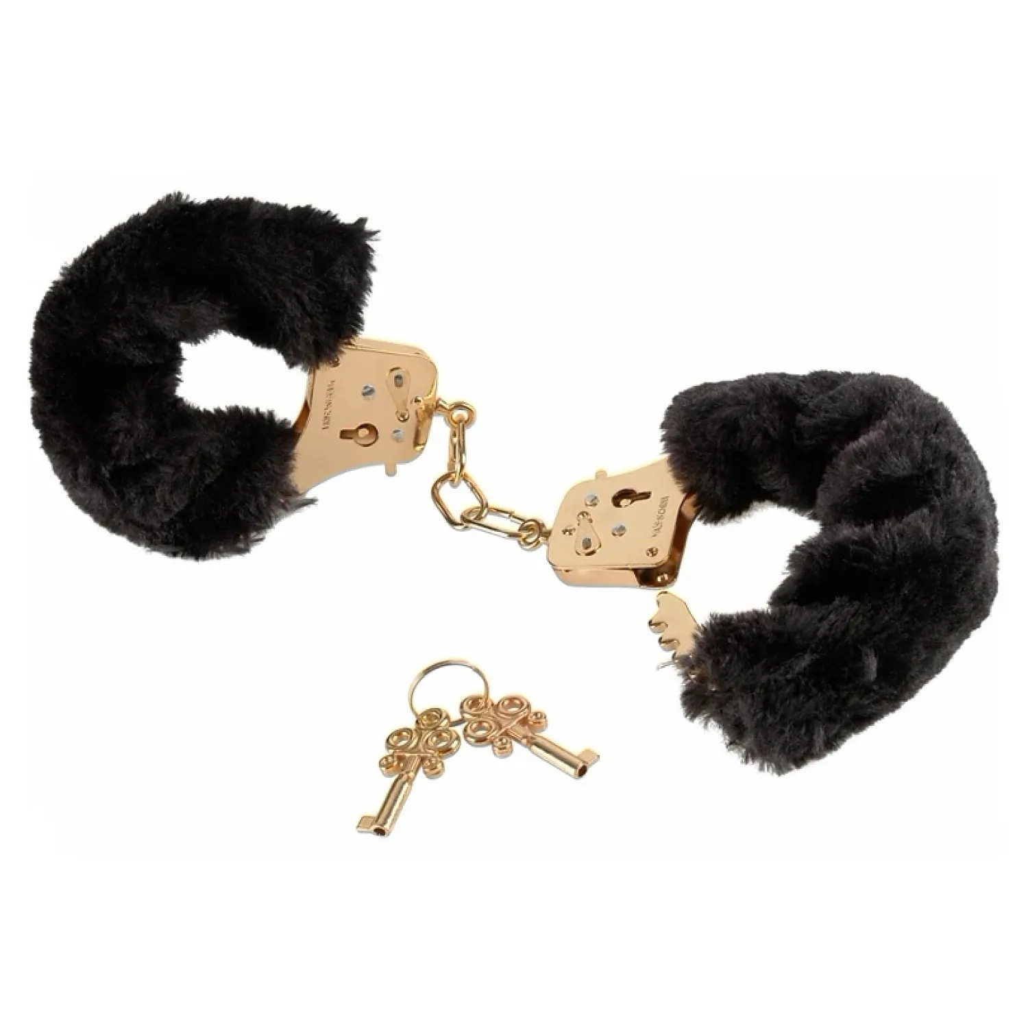 Cătușe Deluxe Furry Auriu cu puf negre pentru nopțile sălbatice în care vrei să îți faci de cap.