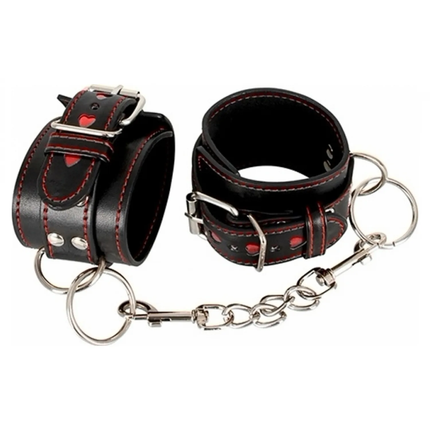 Aspectul dur este rafinat de micile inimi roșii strălucitoare și cusăturile roșii.