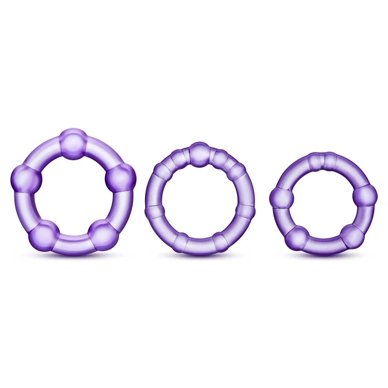 Setul de inele Stay Hard Beaded sunt făcute din TPE și au un diametru de 3.1 cm, 3.3 cm, respectiv 3.8 cm. Fiind flexibil, se potrivește pe aproximativ orice membru și îți transmite tot luxul de care ai nevoie.