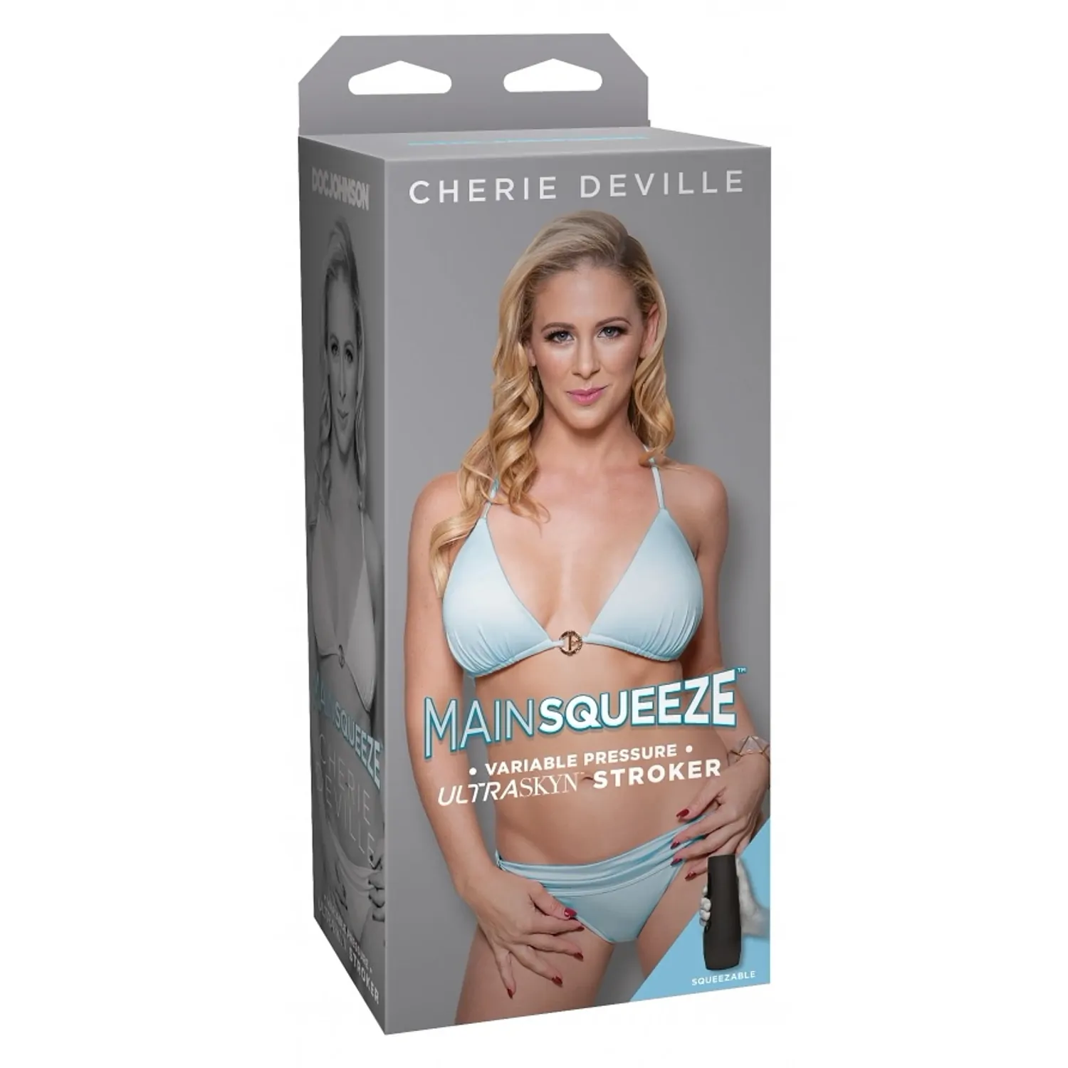 Cherie DeVille s-a alaturat liniei Doc Johnson Main Squeeze cu propriul ei masturbator cu carcasa rigida. Este conceput pentru a pune forța in mainile tale si are o prindere care se strange si un capac de reglare a suctiunii care va permit sa variati fiecare cursa.