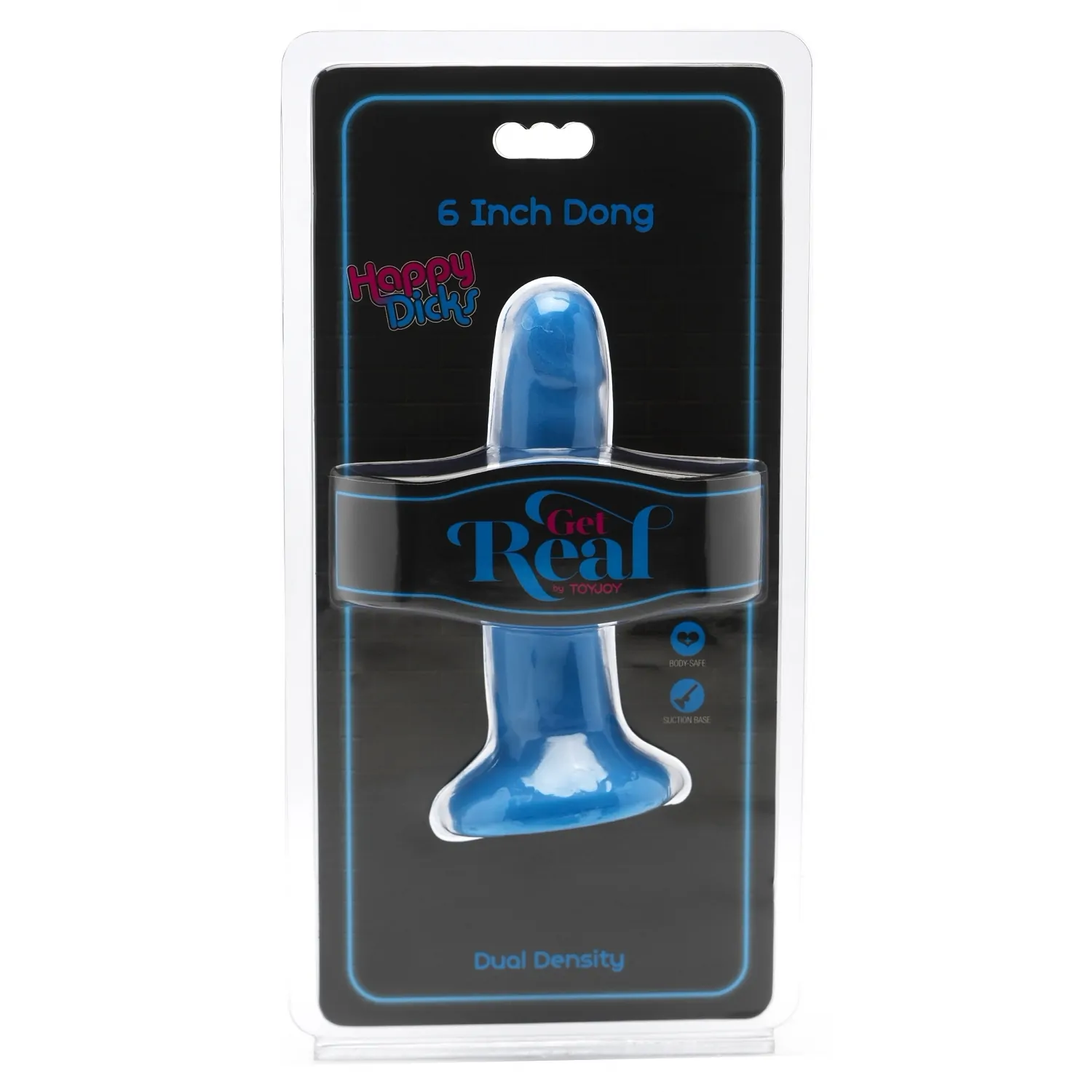 Dildoul Happy Penis cu densitate dublă albastru cu ventuză la bază, este aferent cu ham cu centuri cu inel O. Dong-ul Happy Penis de 6 inchi are un estetică colorat, realist din colecția Get Real by ToyJoy, conceput pentru a atinge toate preferințele tale intime.