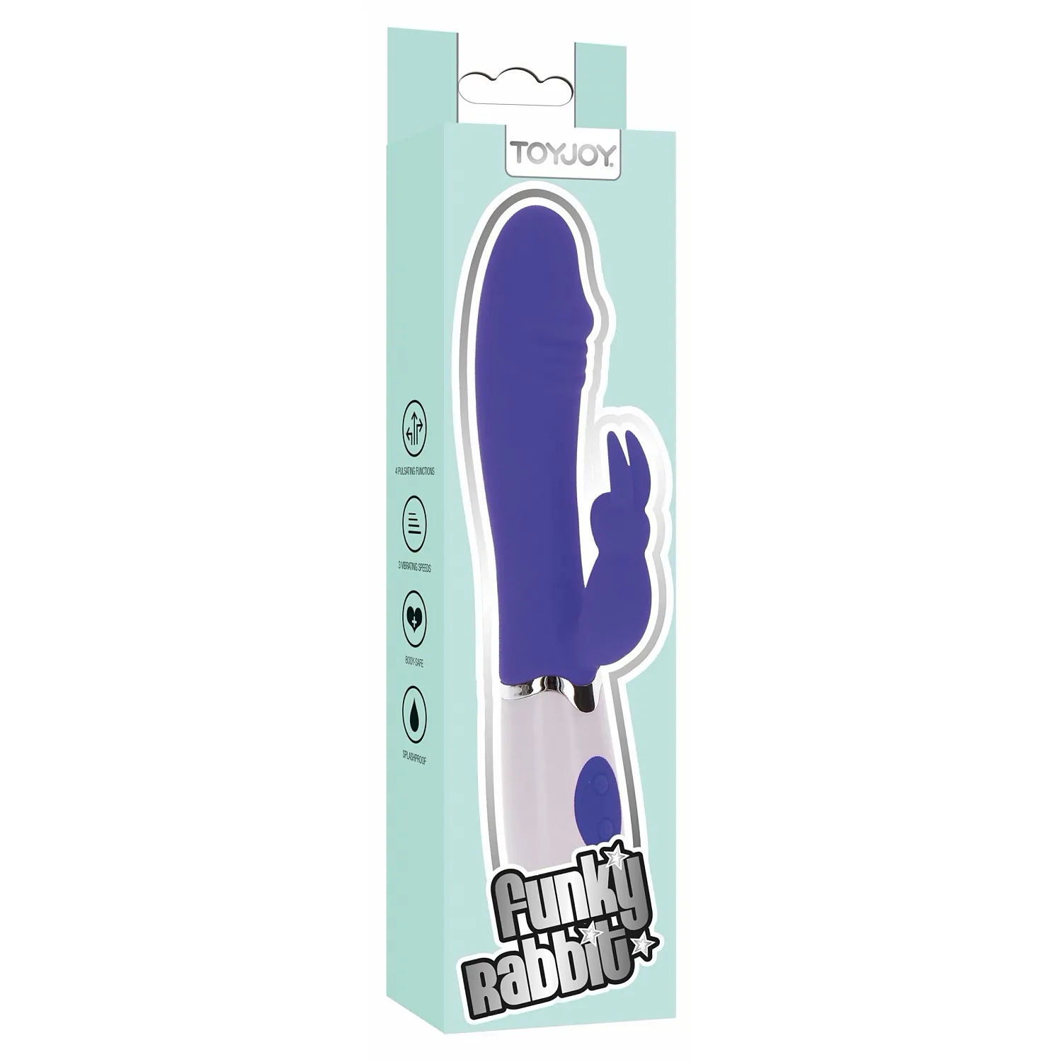 Funky Bunny este un vibrator distractiv, puternic, într-o culoare vie. Designul include un stimulator de clitoris în stil iepure. Vibratorul este sigur pentru corp, durabil la stropire și este confecționat 100% din silicon pur. Bucurați-vă de 4 moduri diferite de vibrație și de 3 niveluri variate de viteză. Predați-vă plăcerii și obțineți Funky!