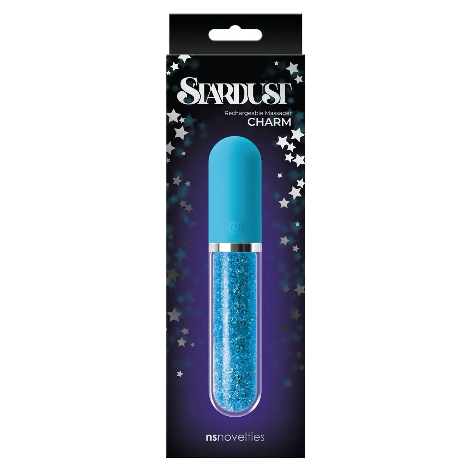 Vibratorul Stardust Charm este o jucărie specială confecționată din silicon și geam borosilicată. Are o formulă de culori strălucitoare, și are o alură albastră foarte plăcută.