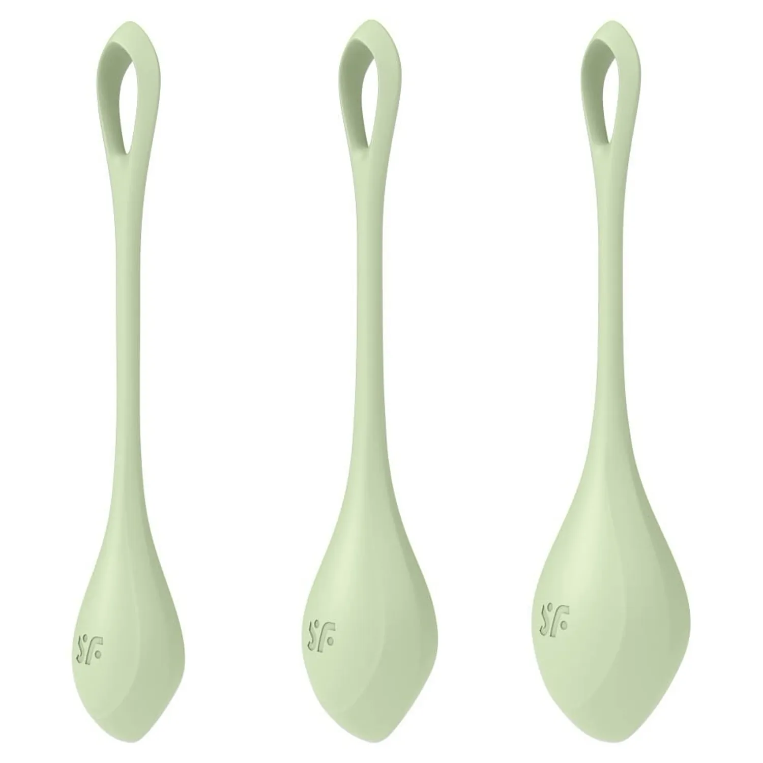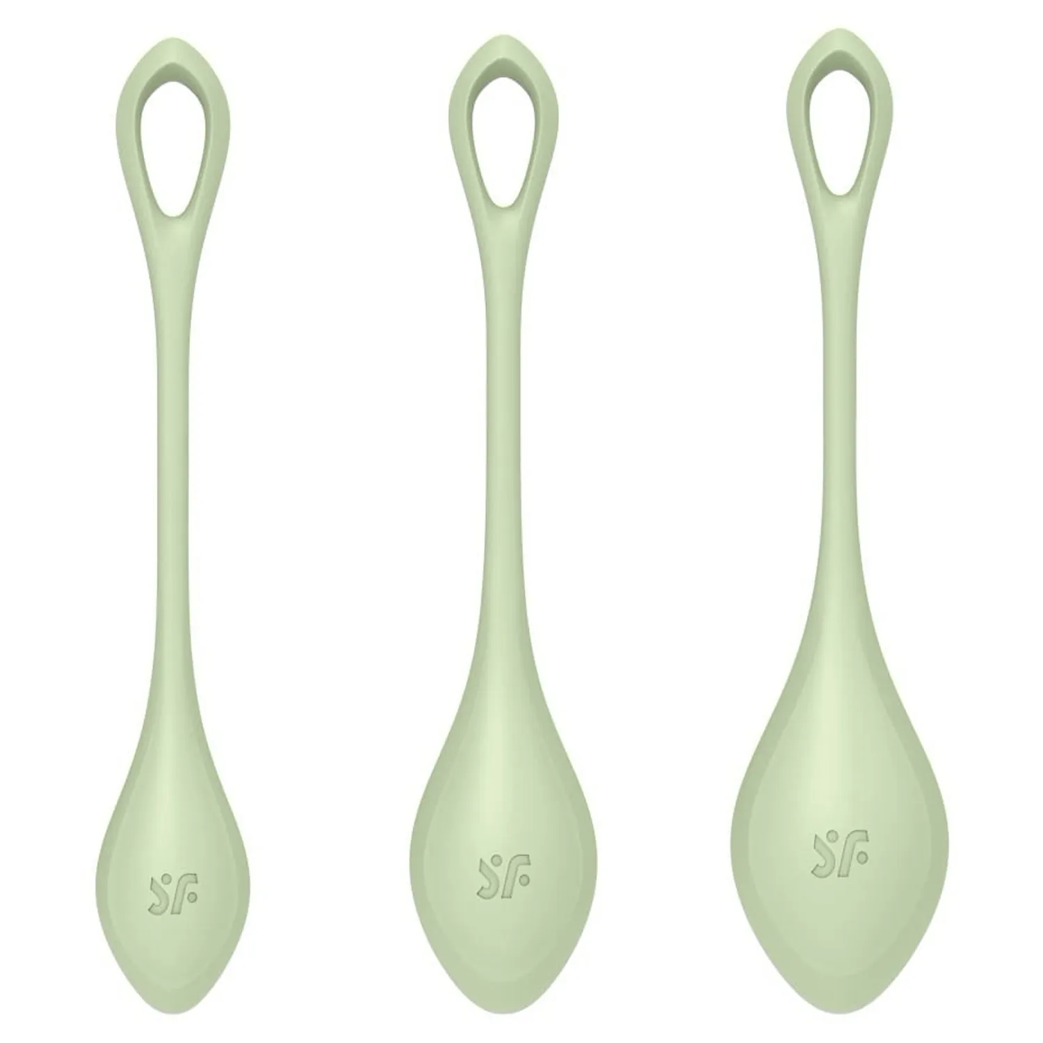 Cu bilele genitale Satisfyer Yoni Power 2 îți poți tonifia musculatură pelviană și te poți bucura de efectele optimiste asupra sănătății aparatului reproducător. Dincolo de greutatea variată a bilelor, dimensiunile sunt, de asemenea, variate. Astfel, poți începe exercițiile cu cea mai mică și cea mai ușoară dintre bile (2 cm calibru și o greutate de 22 grame), poți progresa înspre bila intermediară (2.5 cm diametru și o greutate de 46 de grame), iar apoi odată ce musculatură este suficient de tonifiată poți utiliza cea mai grea dintre bile (3 cm diametru și 73 de grame).