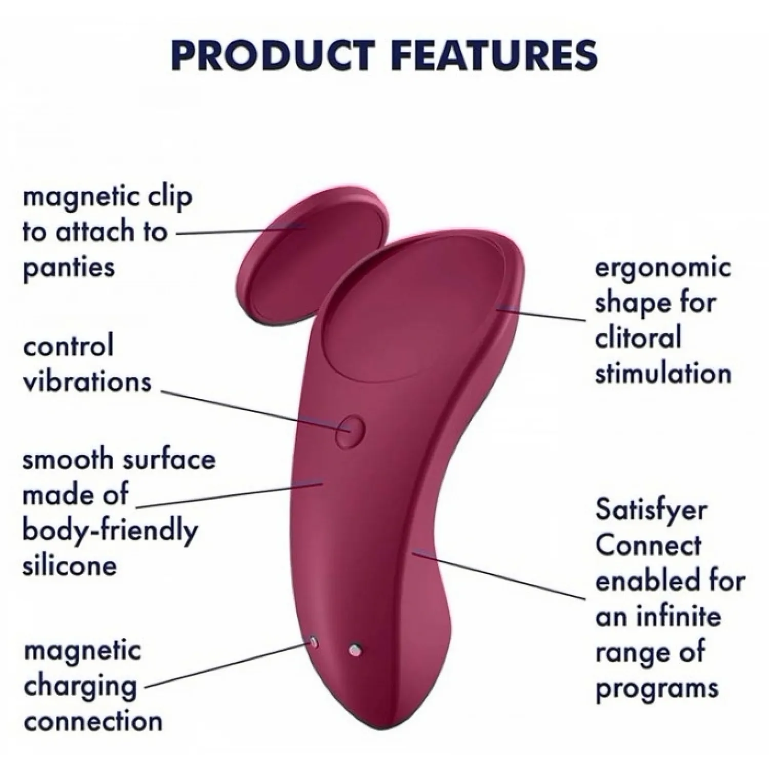 Aplicația Satisfyer Connect. Mulțumită aplicației Satisfyer Connect, este posibil să experimentați aventuri pasionale complet noi. Descărcați gratuit aplicația pentru iOS și Android pe telefon, tabletă sau Apple Watch. Apoi puteți conecta cu ușurință Satisfyer prin Bluetooth sau internet. Trimiteți sunete ambientale sub formă de vibrații, lăsați pe altcineva să vă controleze Satisfyer-ul sau să creați singur un ritm stimulativ sau transformați-vă lista de redare Spotify preferată într-o vibrație senzuală: creativitatea ta nu cunoaște limite!