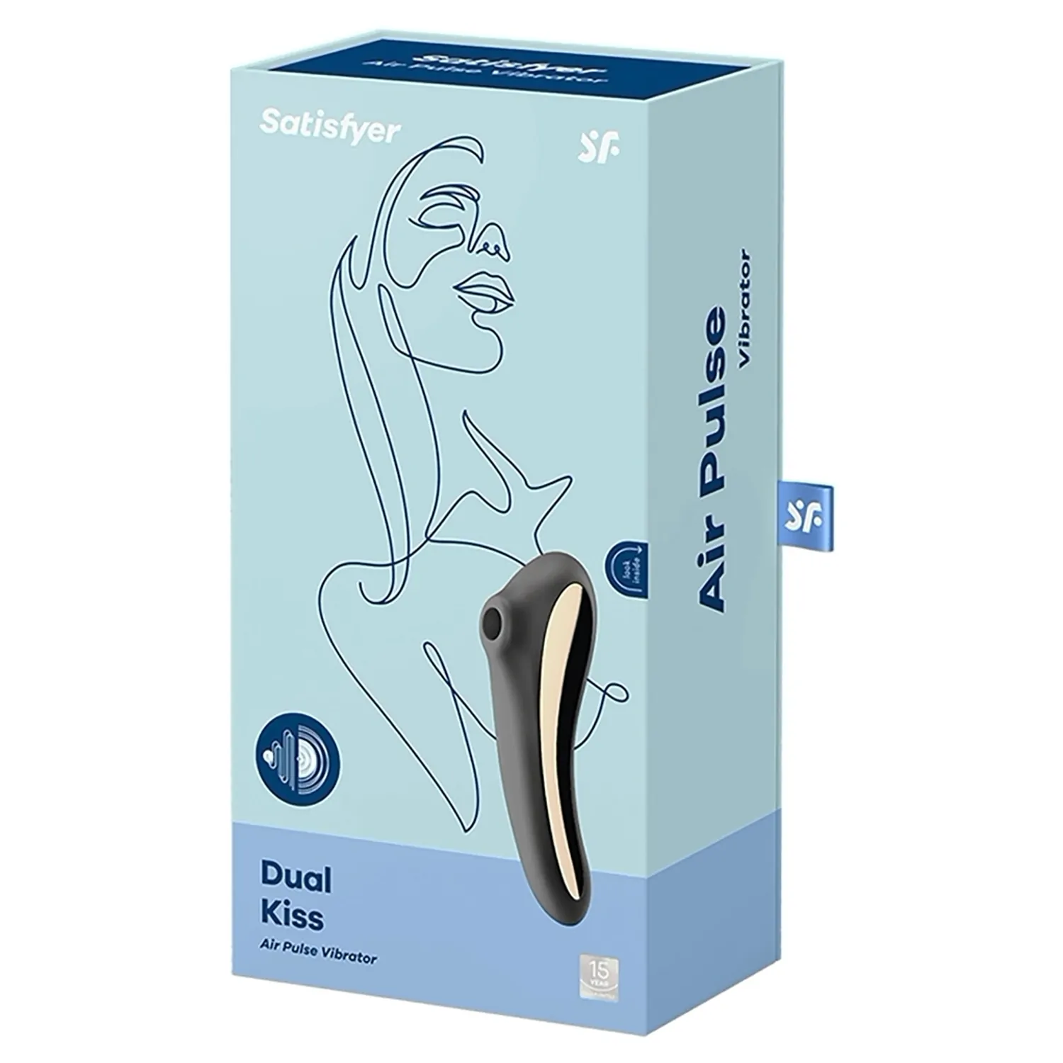 Dual Kiss te va impresiona cu o formulă de unde de apăsare minunate și un braț inserabil cu vibrații puternice. Vibratorul clitoridian Dual Kiss Satisfyer este confecționat din silicon și are 19 cm mărime iar în calibru 3.8 cm.