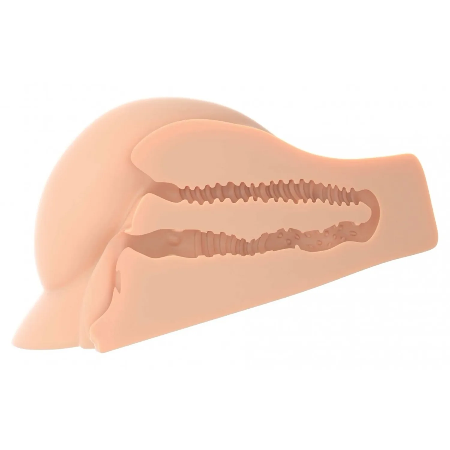 - Masturbatorul cântărește peste 2 kg, ceea ce reprezintă că nu alunecă pe suprafețe netede și este potrivit pentru utilizare fără mâini. - Canalele de plăcere sunt conectate între ele pentru o curățare ușoară.