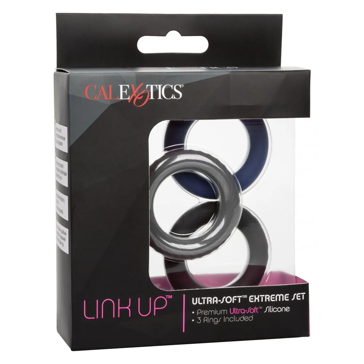 De la începători timizi până la experți în erotică, kitul Link Up Ultra-Soft Extreme vă va înfășura strâns de plăcere cu un set de 3 inele de îmbunătățire ultra-moi, ultra-elastice. Fiecare inel din acest set are o textură unică, unul neted, unul crestat și altul ondulat, pentru o experiență senzațională la fiecare purtare.