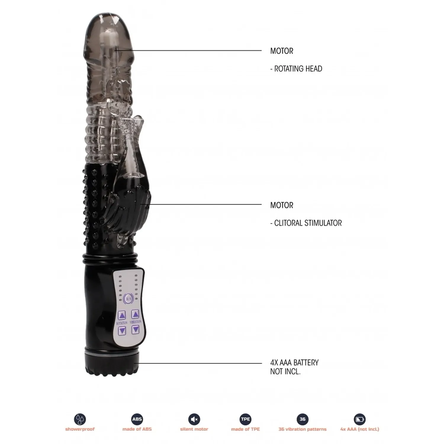 Acest produs funcționează cu 4 baterii în format AAA care vor fi adăugate în coș împreună cu acest produs. Pentru o alunecare mai fină va propunem utilizarea unui lubrifiant. Curățați bunul premergător utilizării cu una din soluțiile speciale de îngrijire pentru astfel de produse.